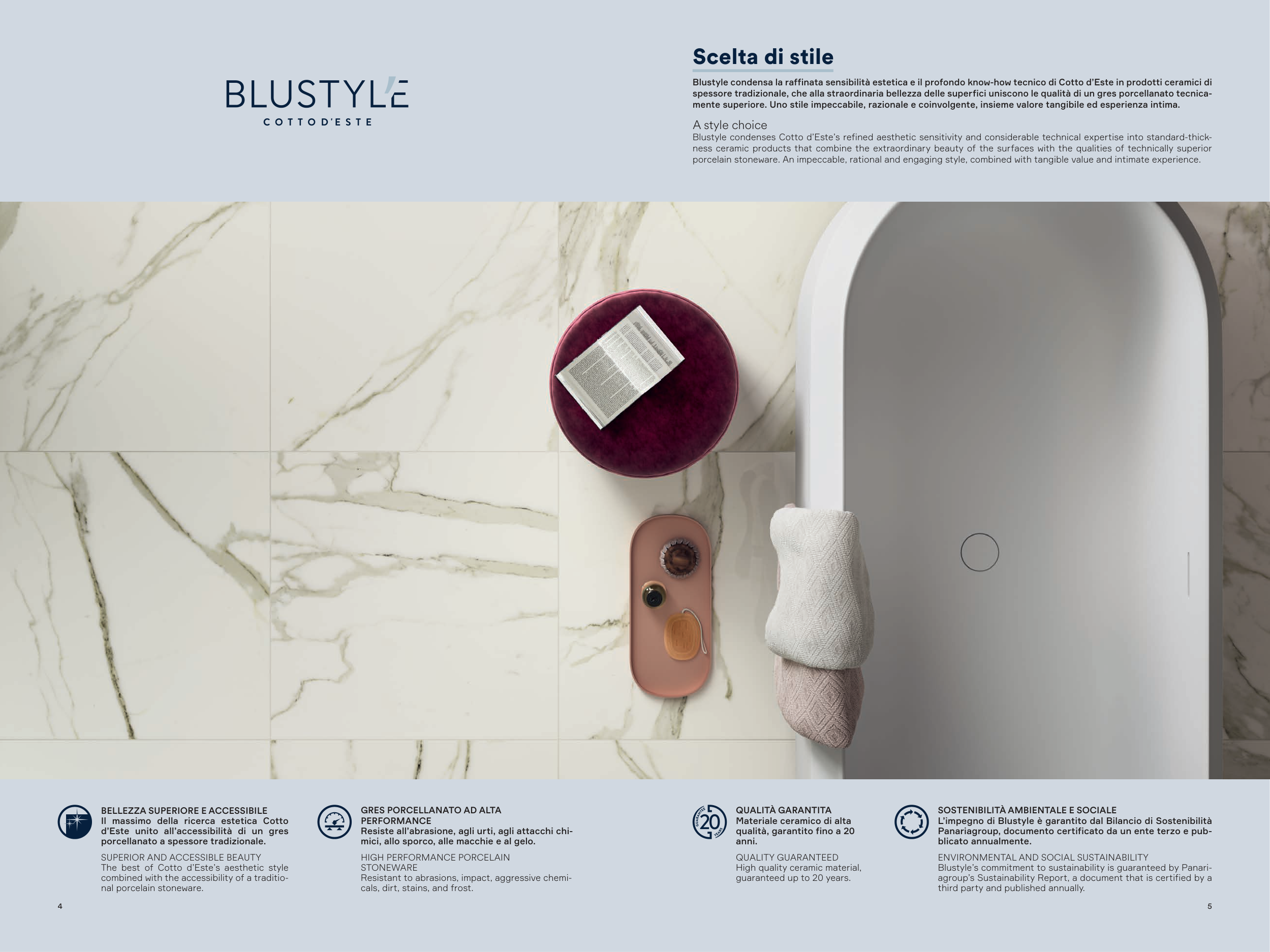 Blustyle condensa la raffinata sensibilità estetica e il profondo know-how tecnico di Cotto d’Este in prodotti ceramici di