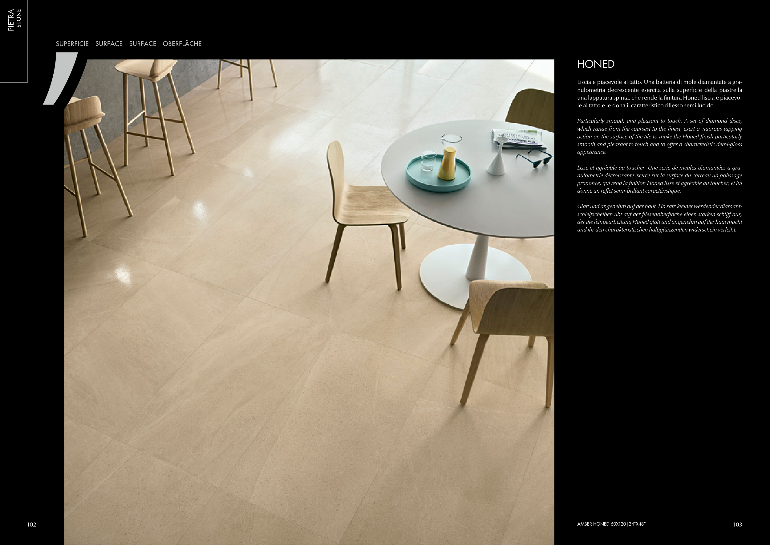 una lappatura spinta, che rende la finitura Honed liscia e piacevo-