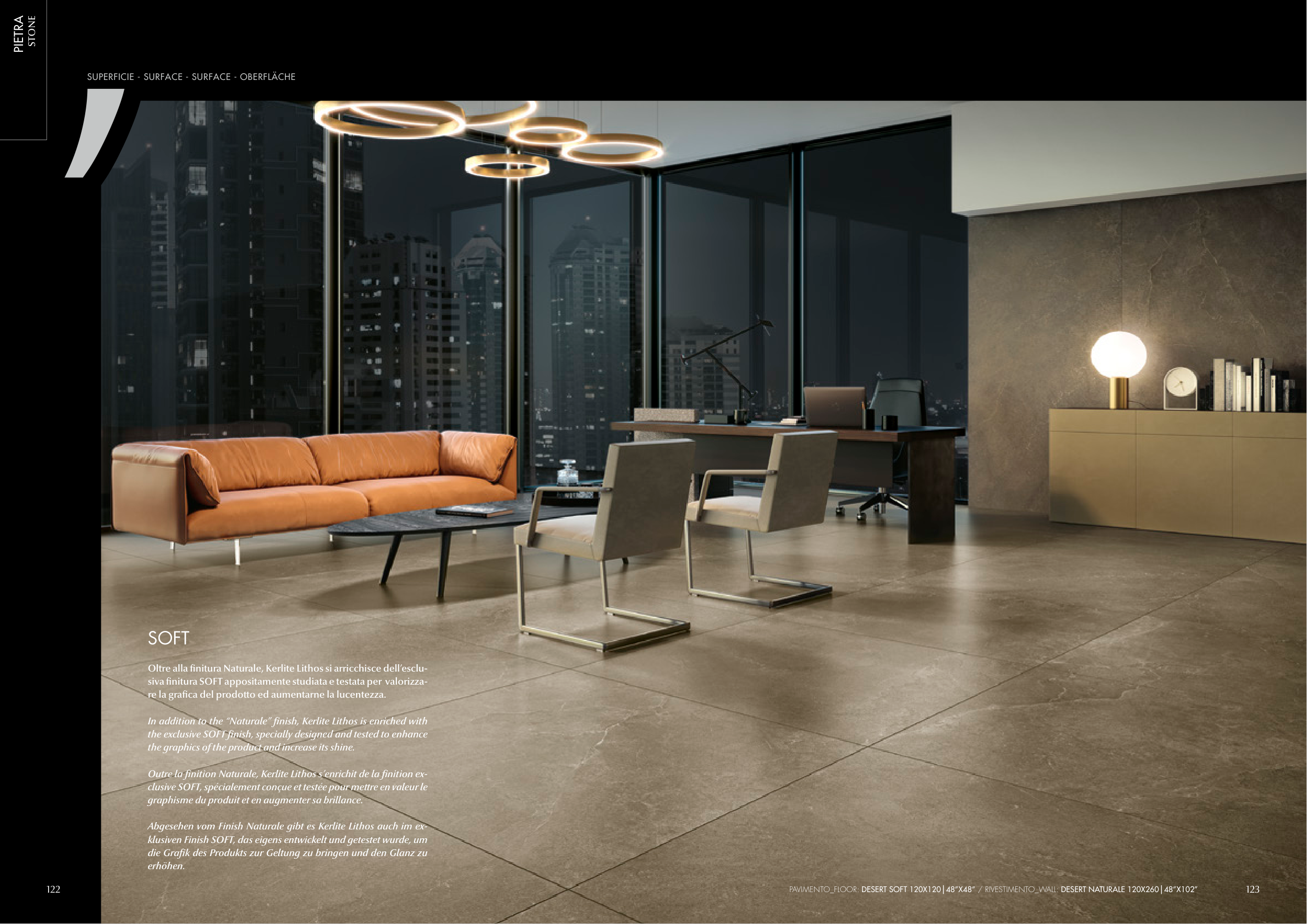 PAVIMENTO_FLOOR: DESERT SOFT 120X120|48”X48” / RIVESTIMENTO_WALL: DESERT NATURALE 120X260|48”X102”