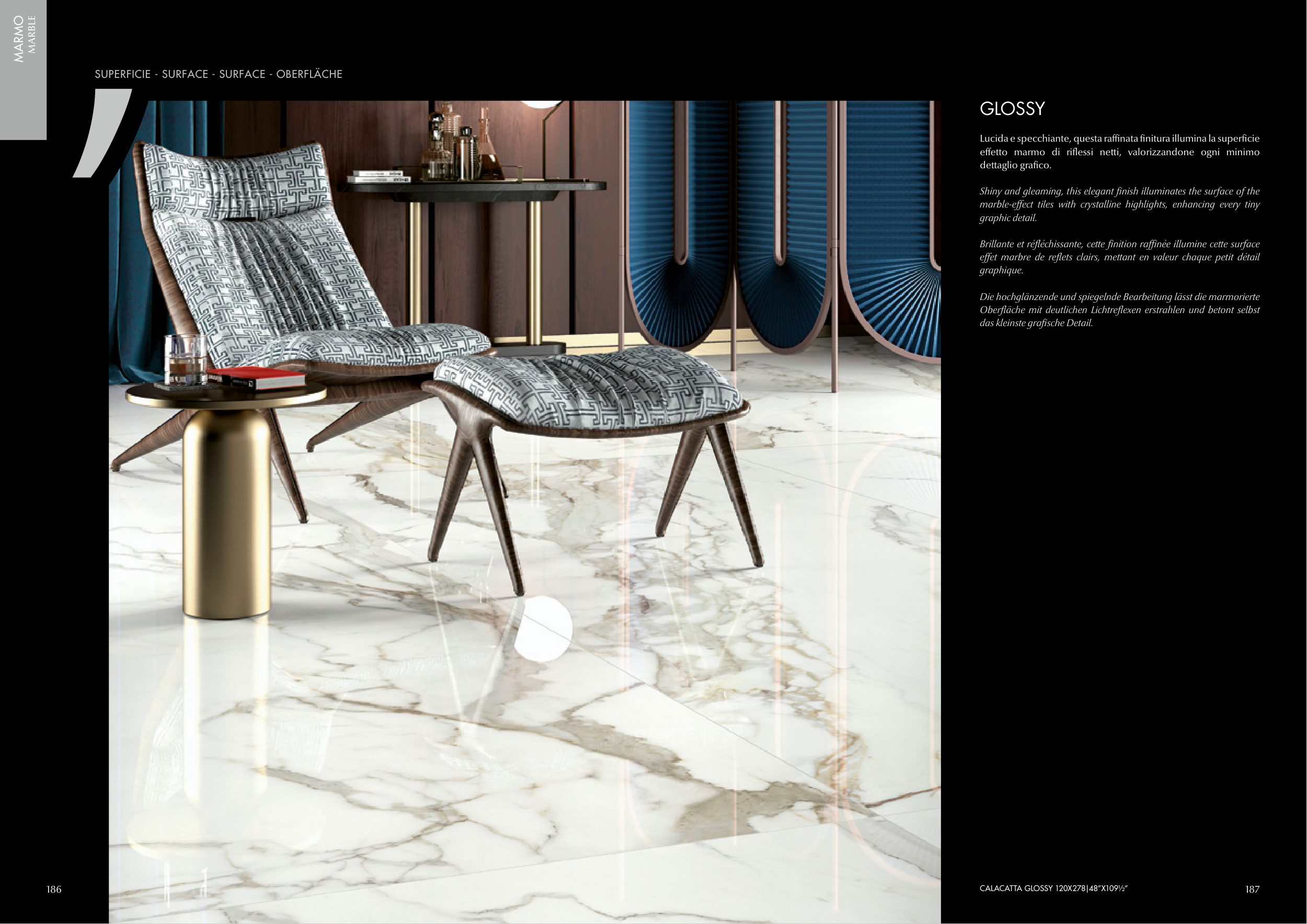 CALACATTA GLOSSY 120X278|48”X109½”