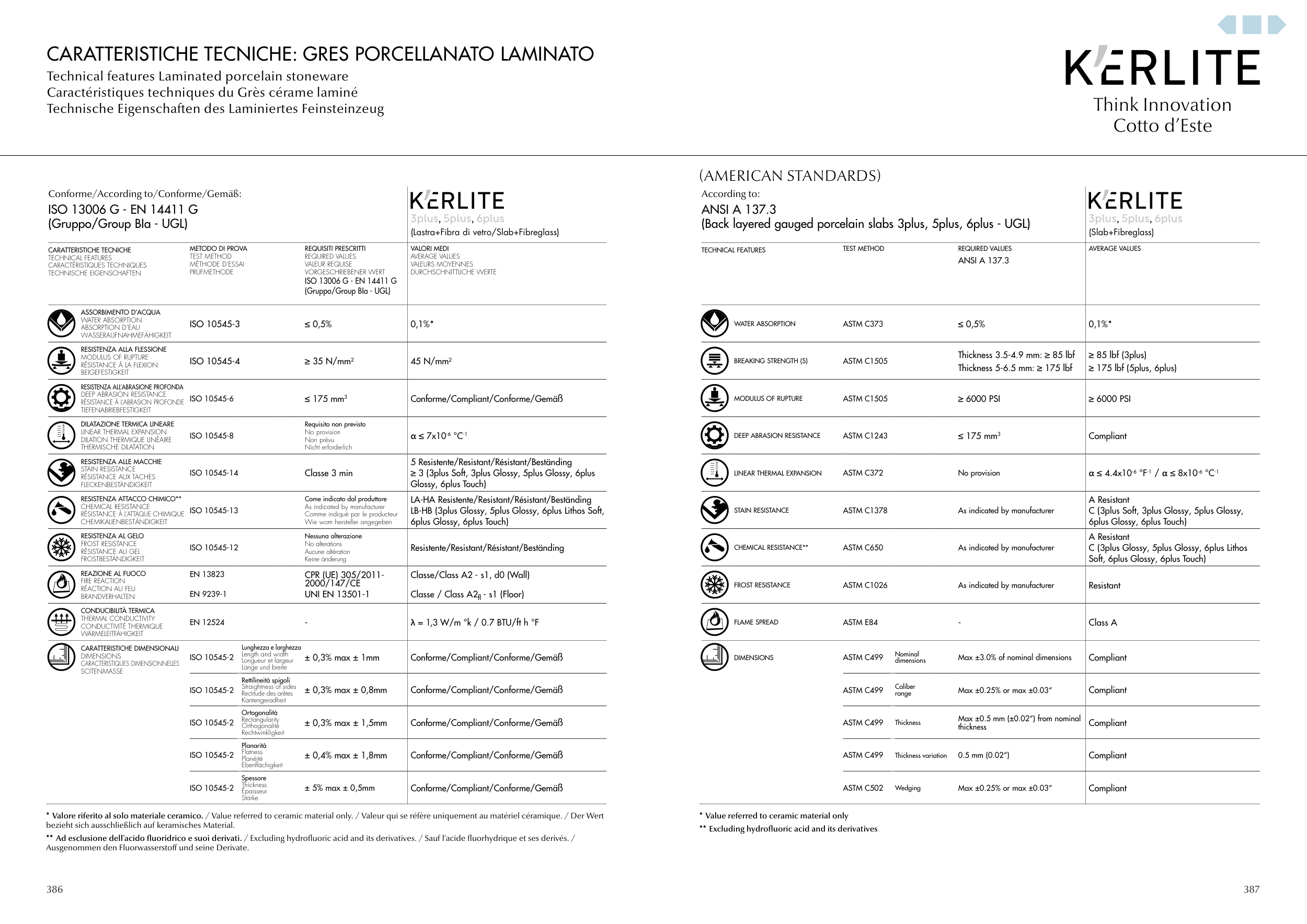 Technical features Laminated porcelain stoneware