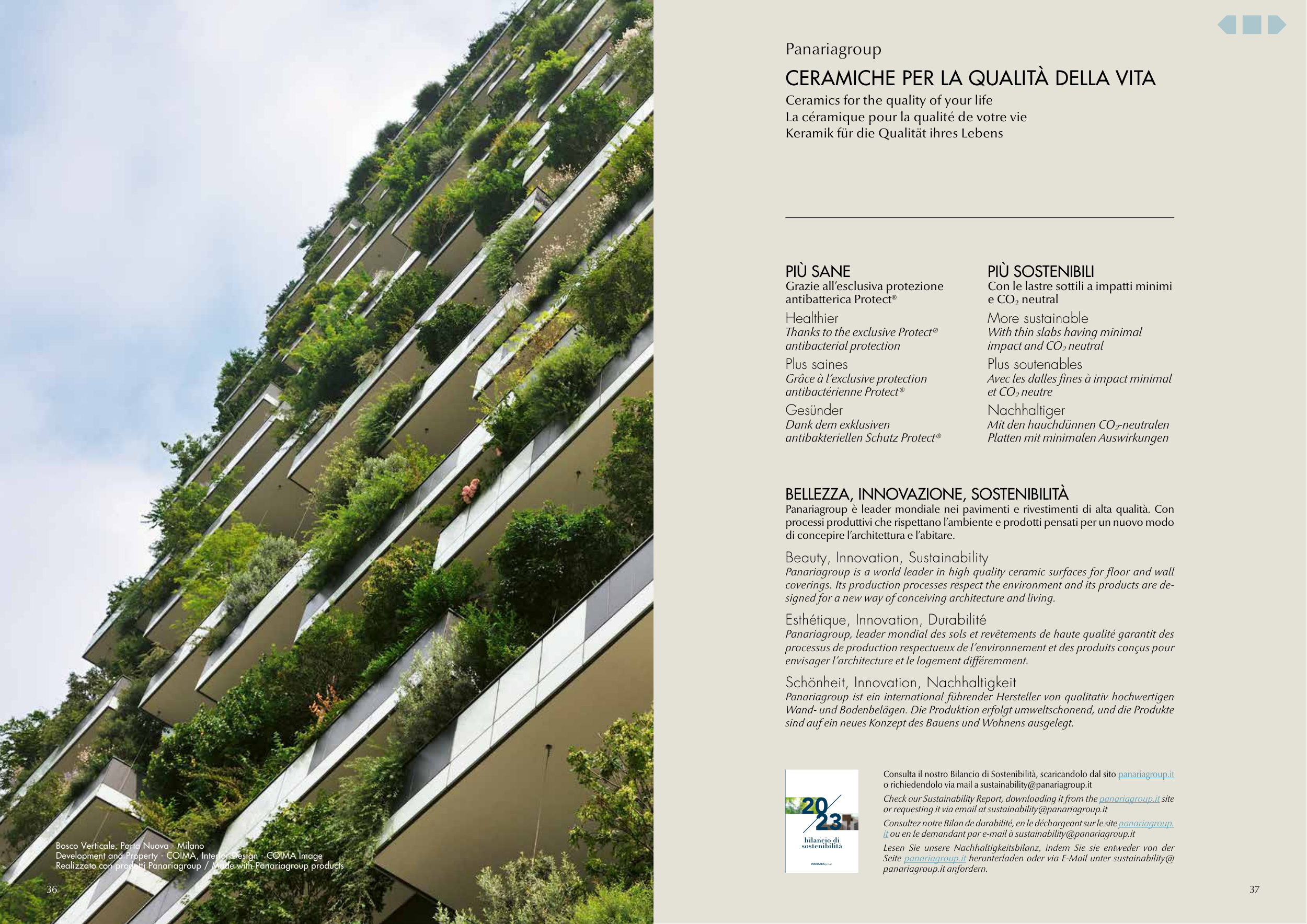Consulta il nostro Bilancio di Sostenibilità, scaricandolo dal sito panariagroup.it