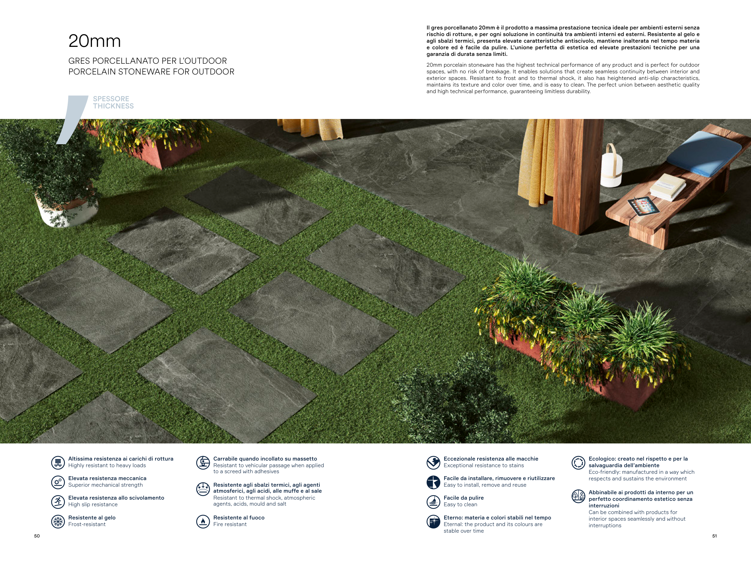 20mm porcelain stoneware has the highest technical performance of any product and is perfect for outdoor