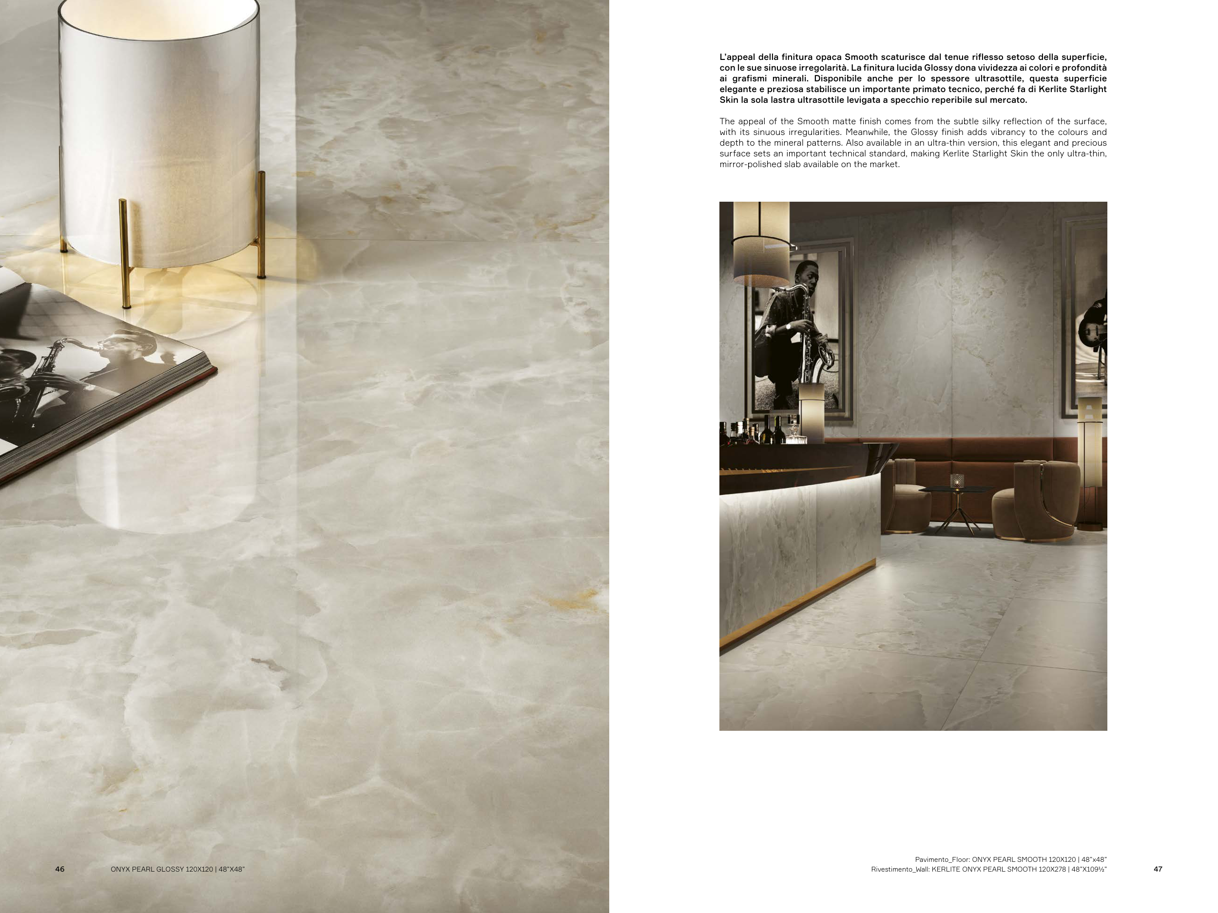 Rivestimento_Wall: KERLITE ONYX PEARL SMOOTH 120X278 | 48”X109½”