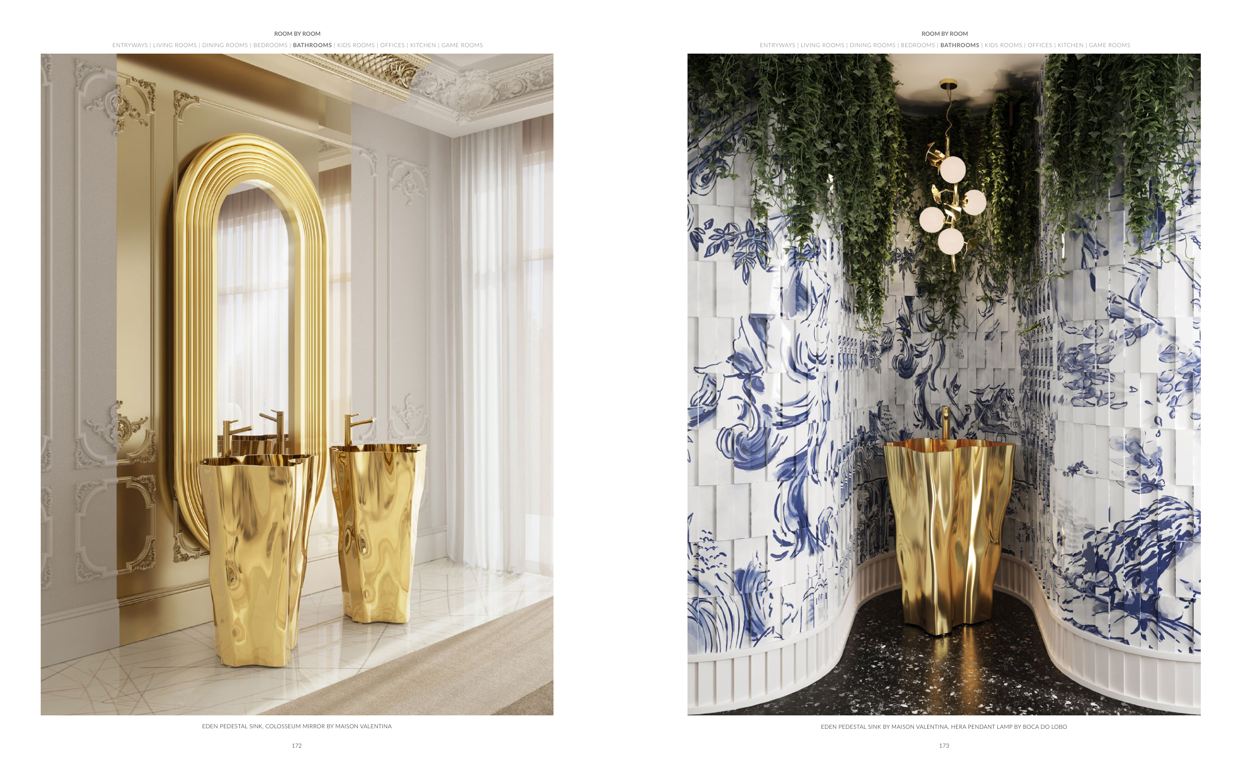 EDEN PEDESTAL SINK BY MAISON VALENTINA, HERA PENDANT LAMP BY BOCA DO LOBO