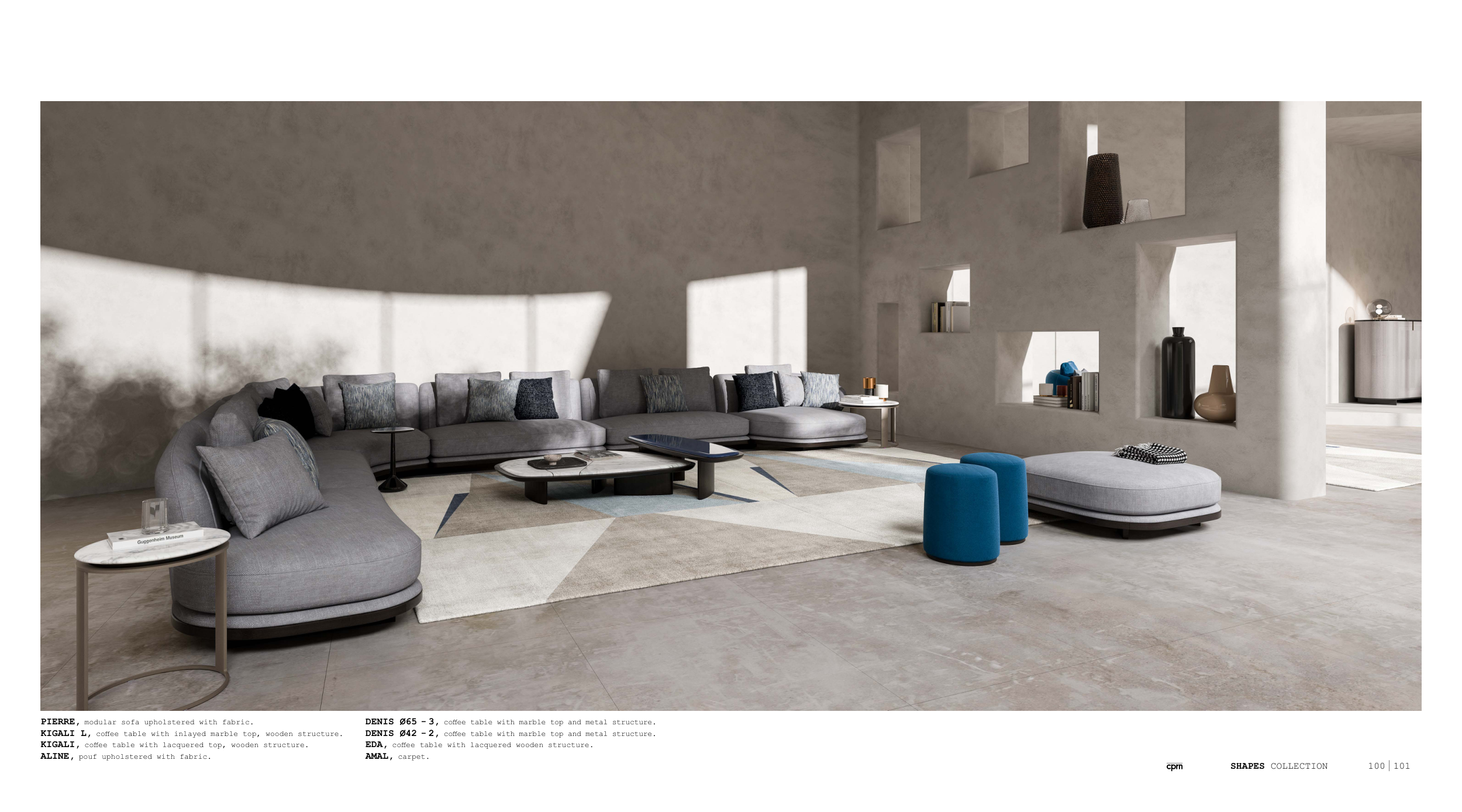 PIERRE, modular sofa upholstered with fabric.