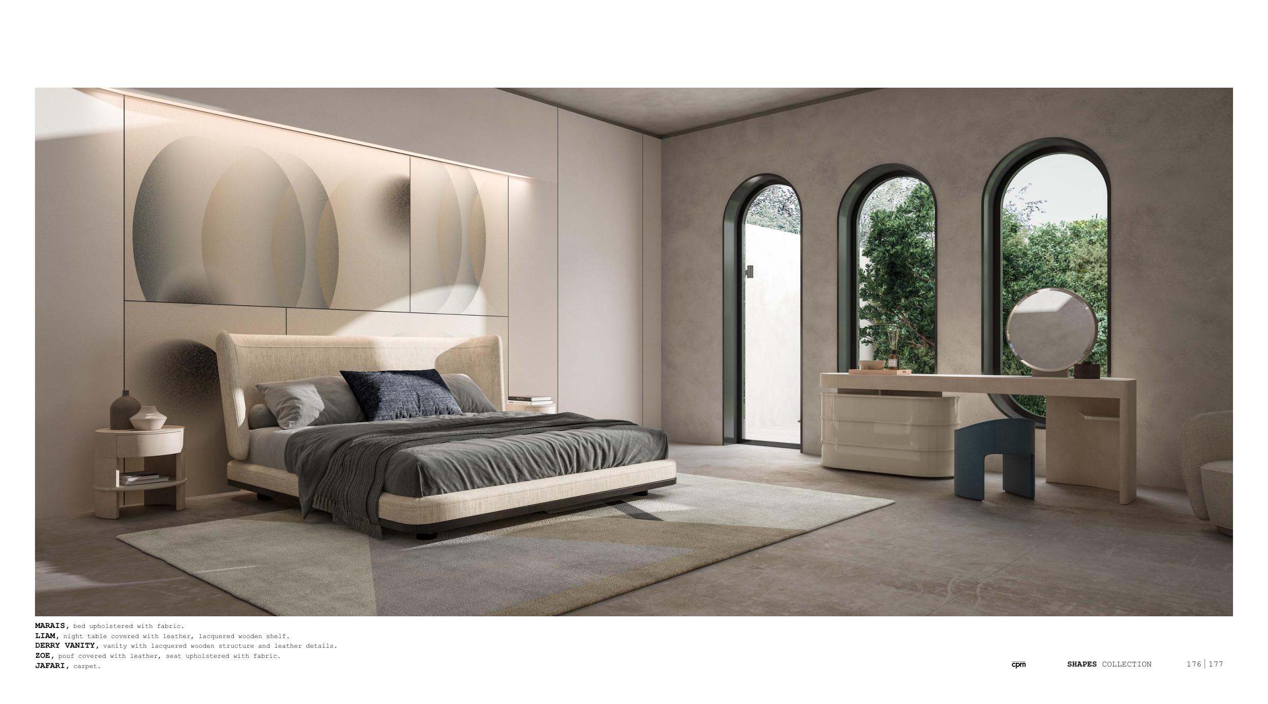 MARAIS, bed upholstered with fabric.