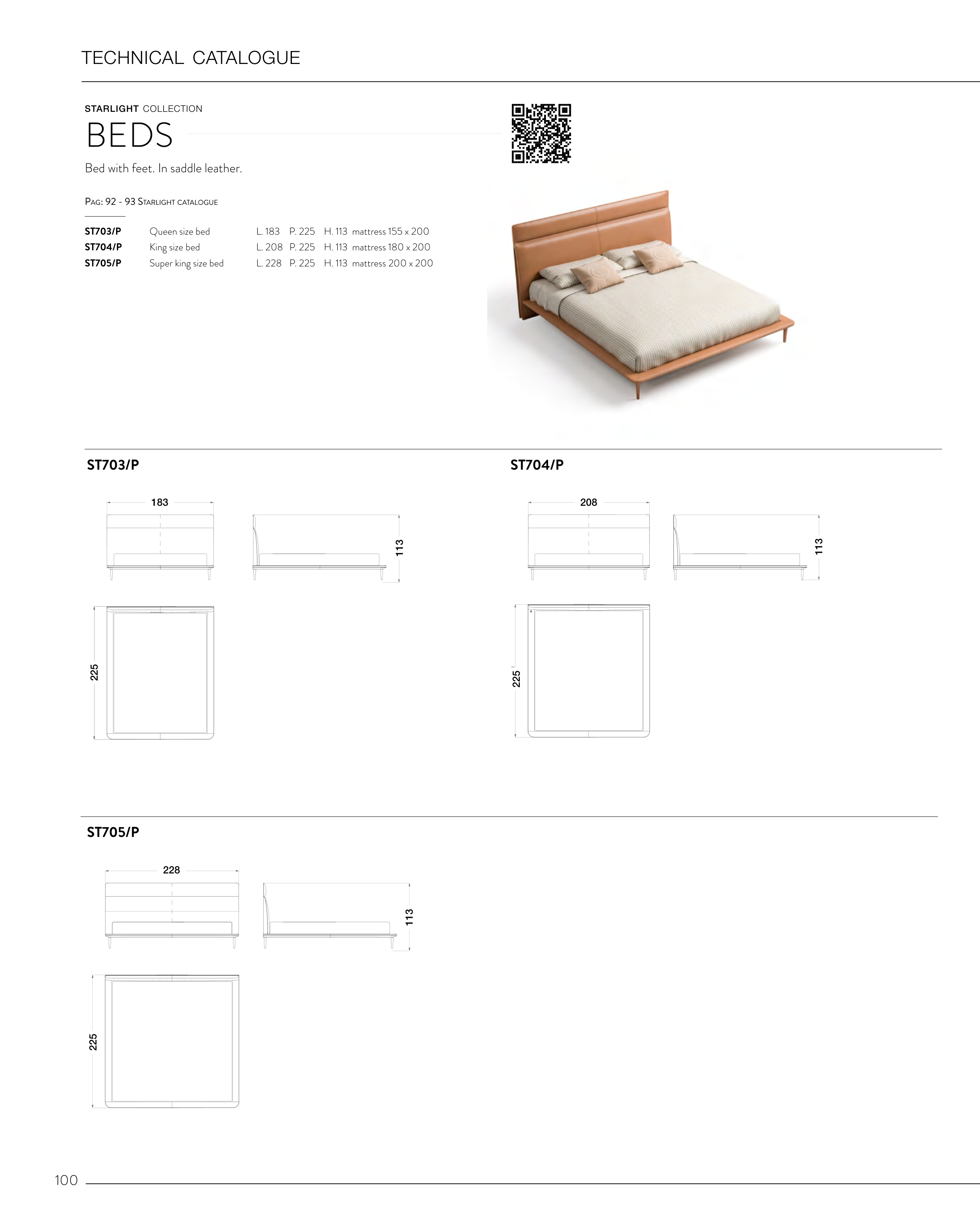 L. 228 P. 225 H. 113 mattress 200 x 200