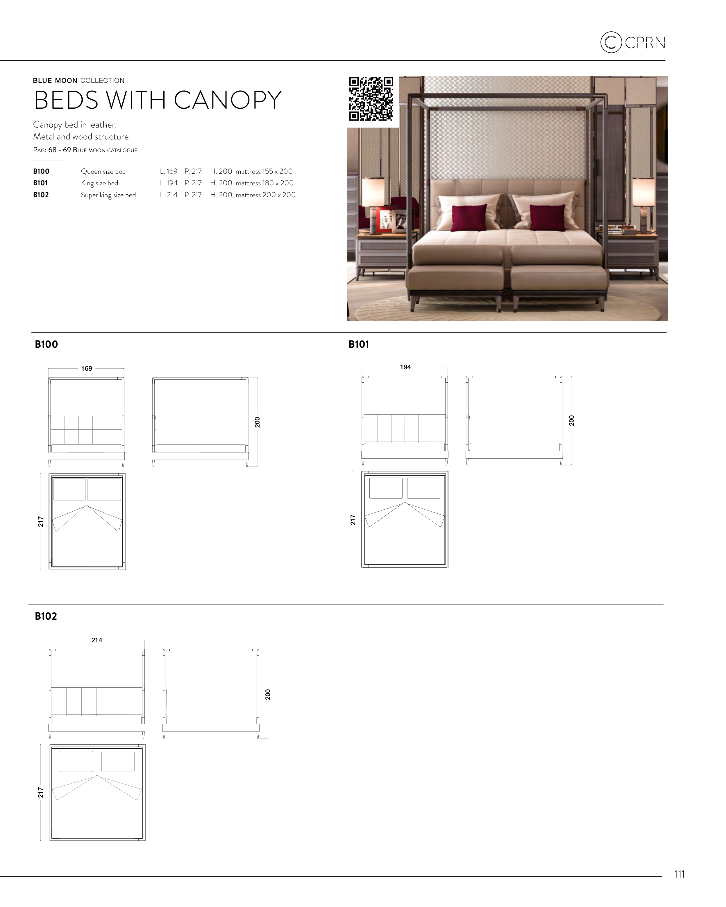 L. 169 P. 217 H. 200 mattress 155 x 200