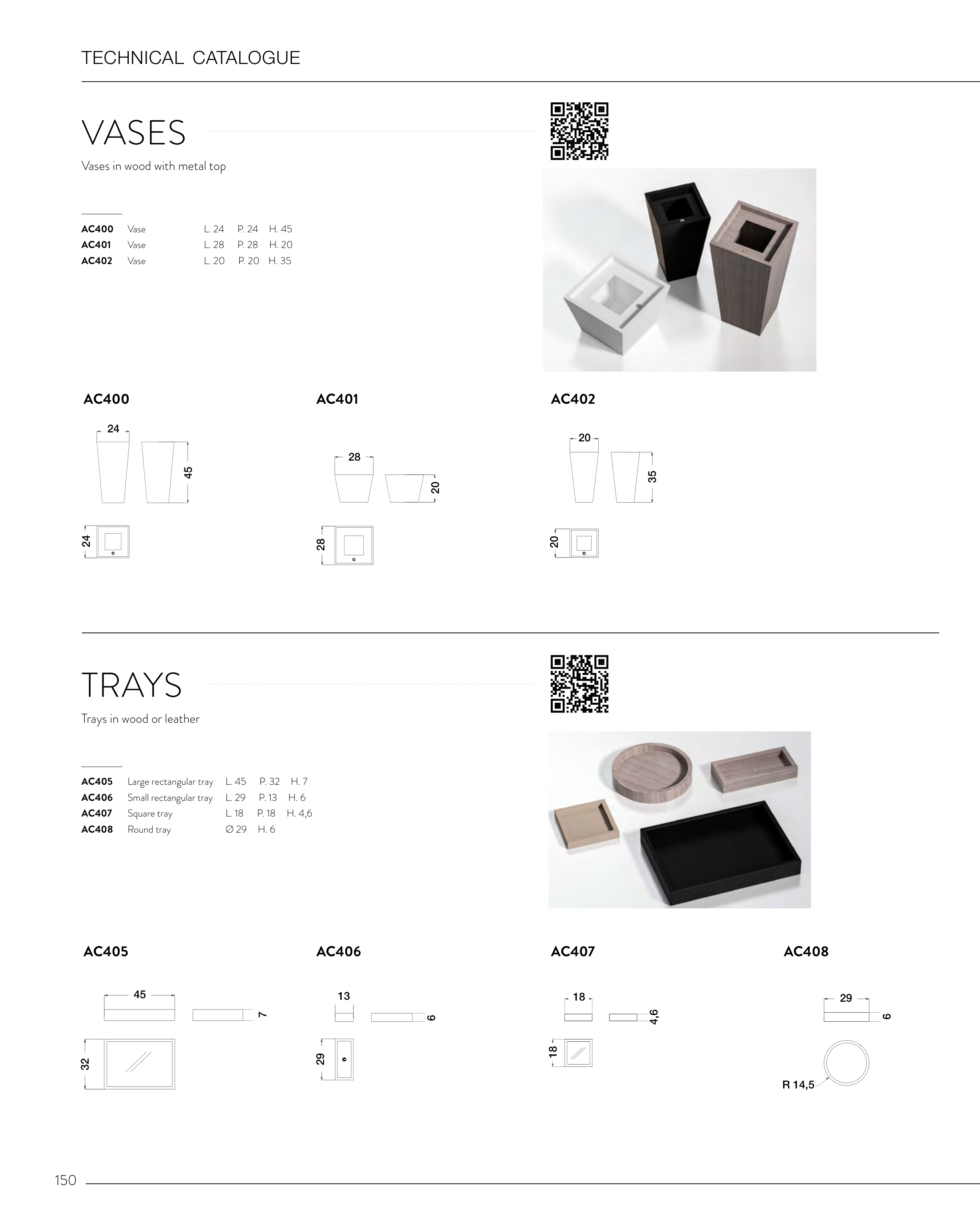 Trays in wood or leather