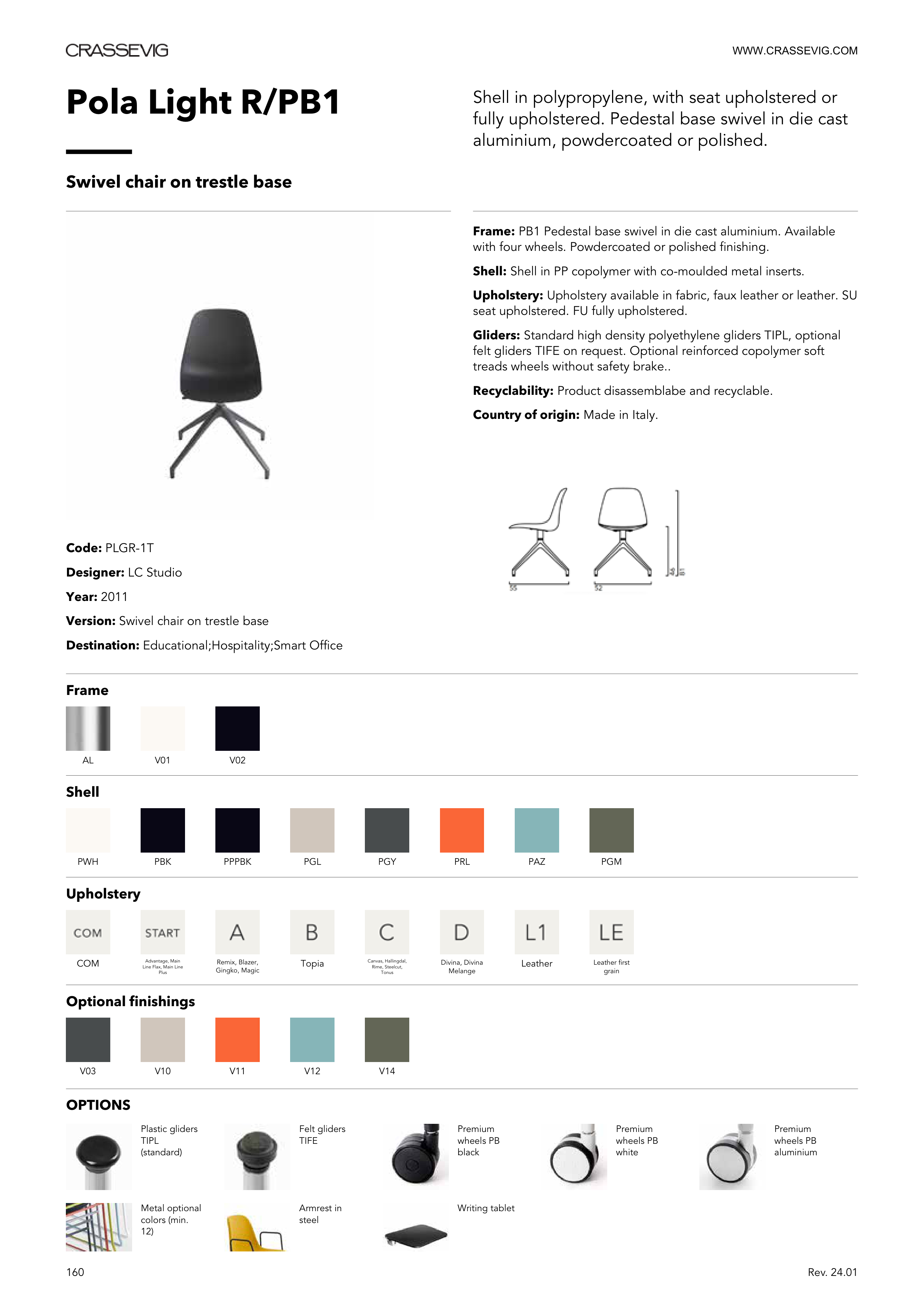 Frame: PB1 Pedestal base swivel in die cast aluminium. Available