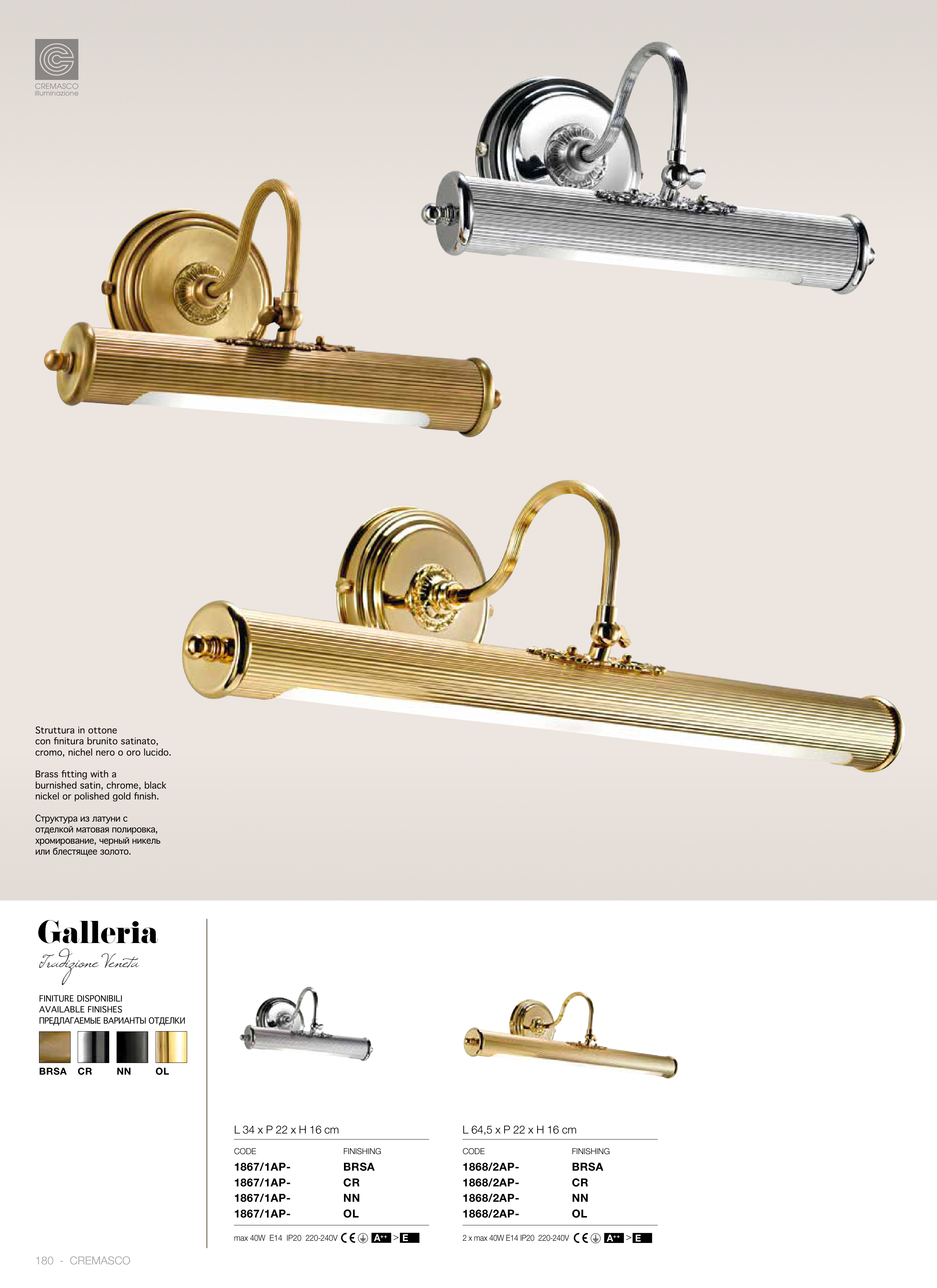 cromo, nichel nero o oro lucido.