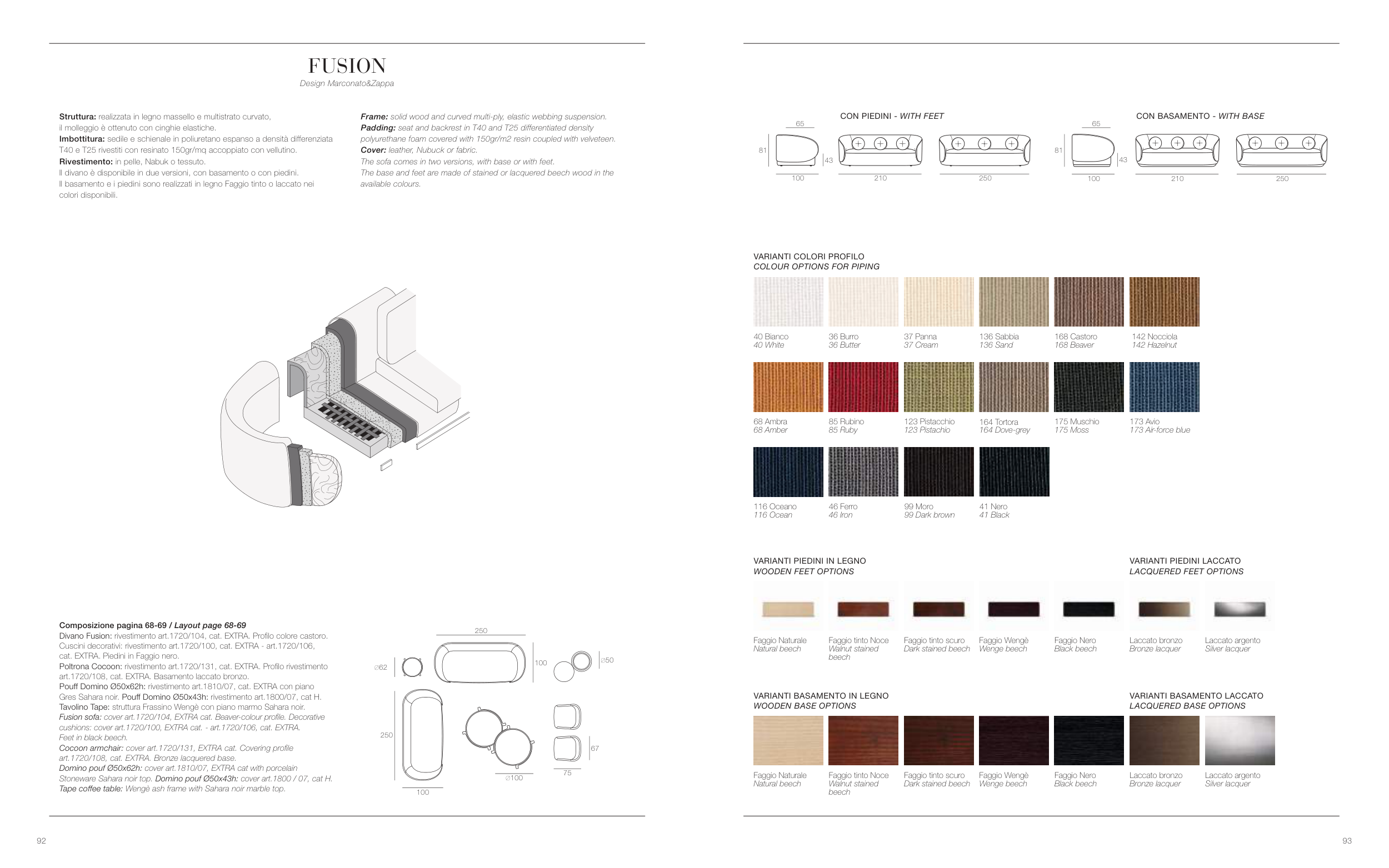 Divano Fusion: rivestimento art.1720/104, cat. EXTRA. Profilo colore castoro.
