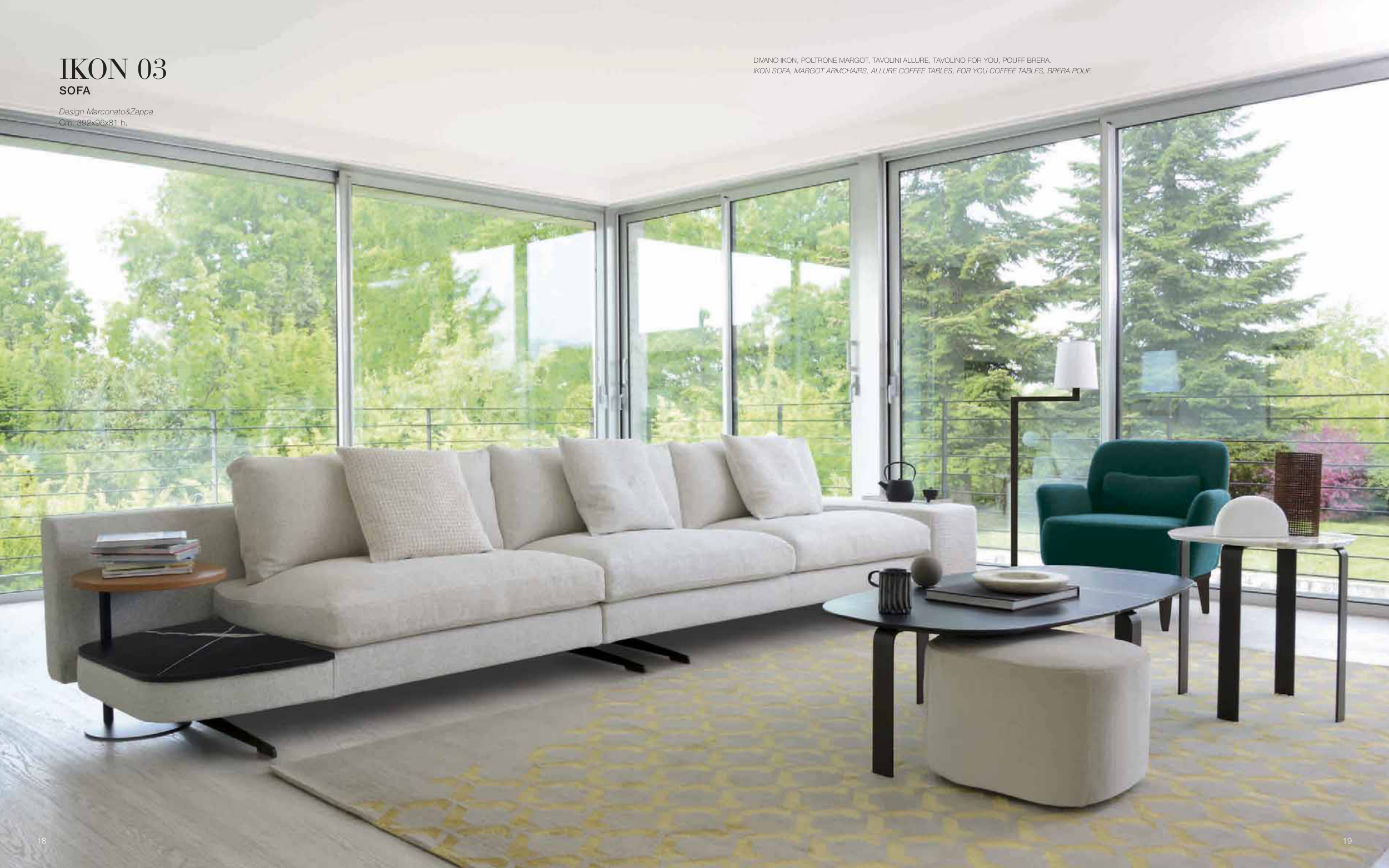 IKON SOFA, MARGOT ARMCHAIRS, ALLURE COFFEE TABLES, FOR YOU COFFEE TABLES, BRERA POUF.