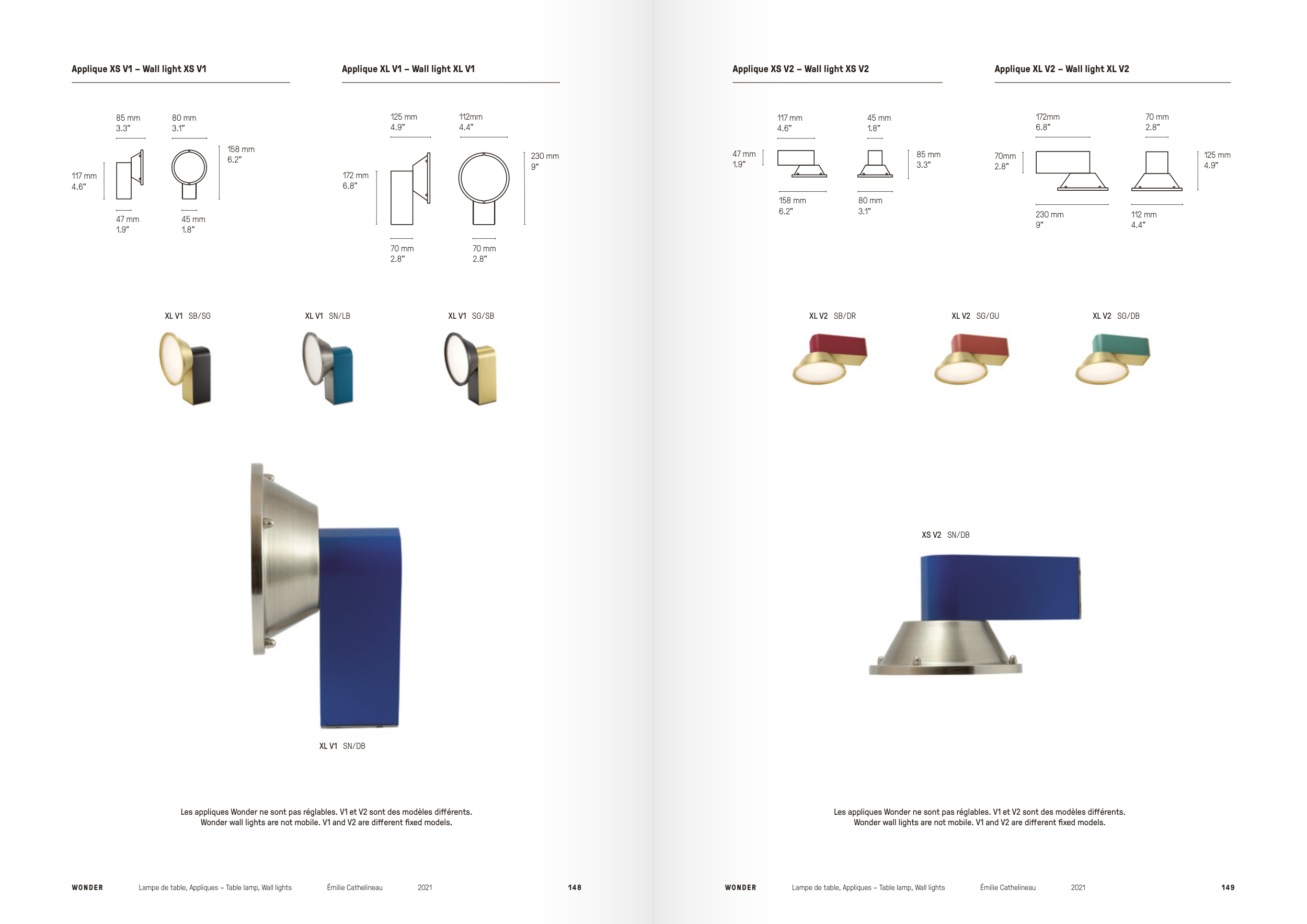 Les appliques Wonder ne sont pas réglables. V1 et V2 sont des modèles différents.