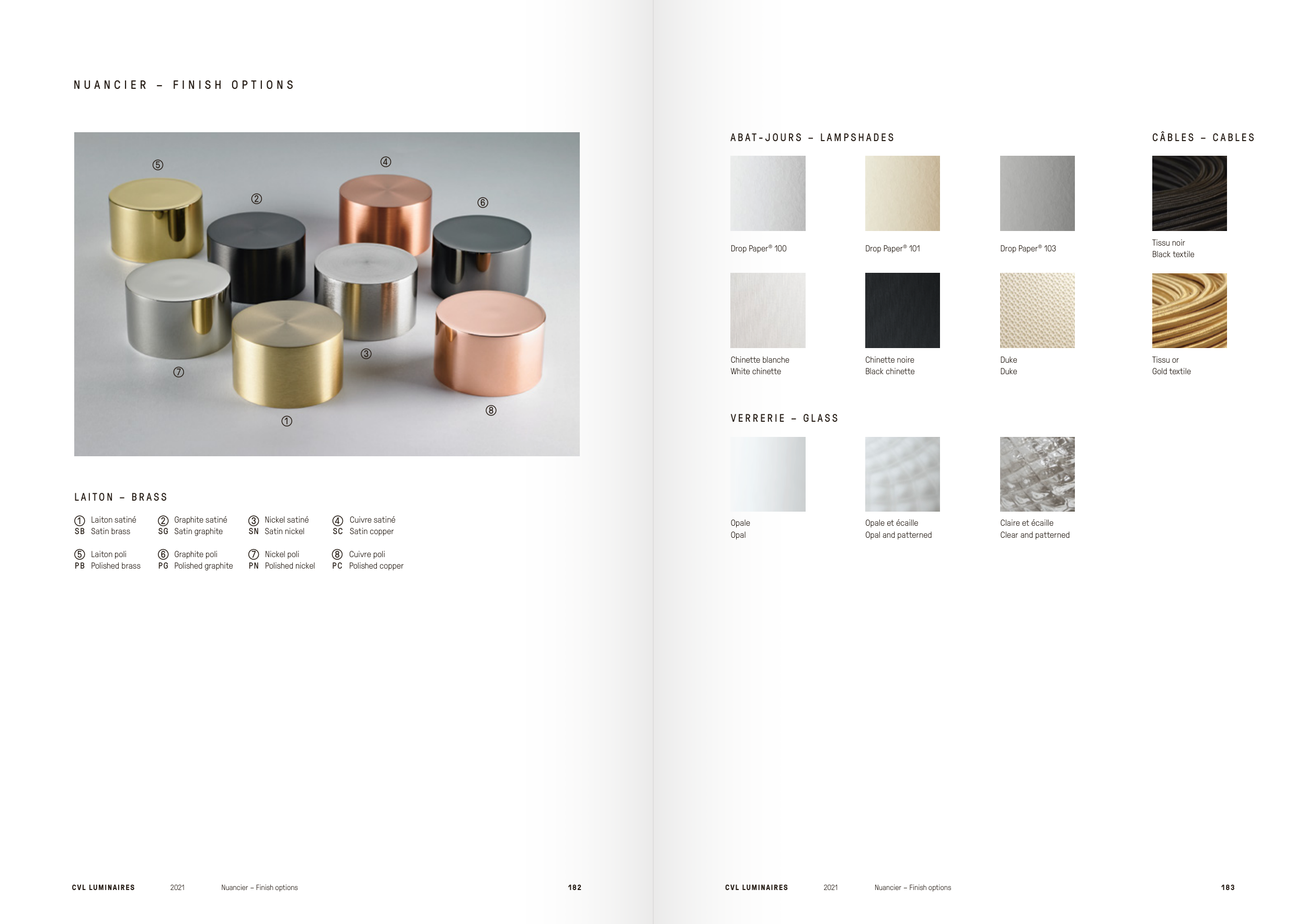 CVL LUMINAIRES 2021 Nuancier – Finish options