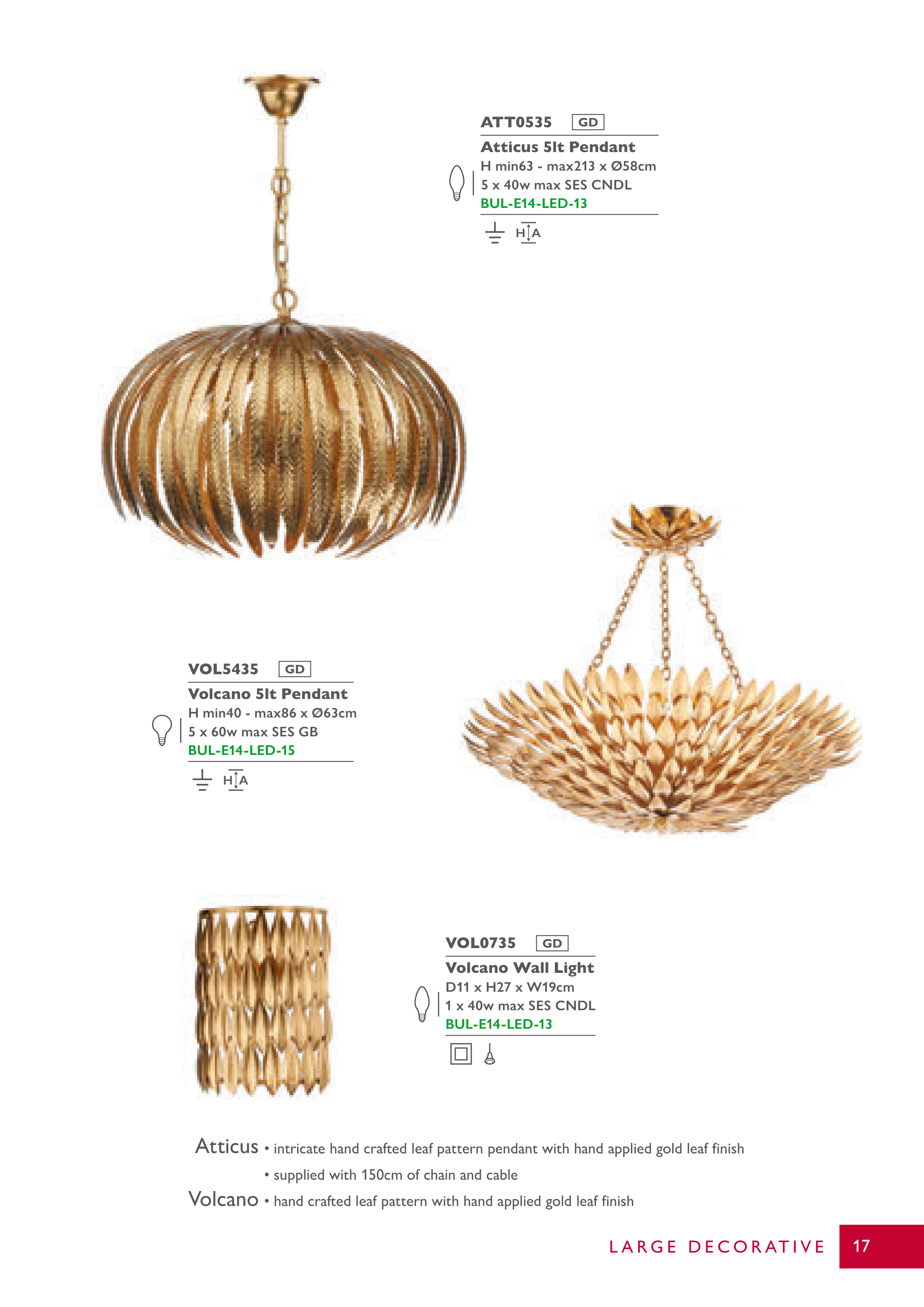 • intricate hand crafted leaf pattern pendant with hand applied gold leaf fi nish