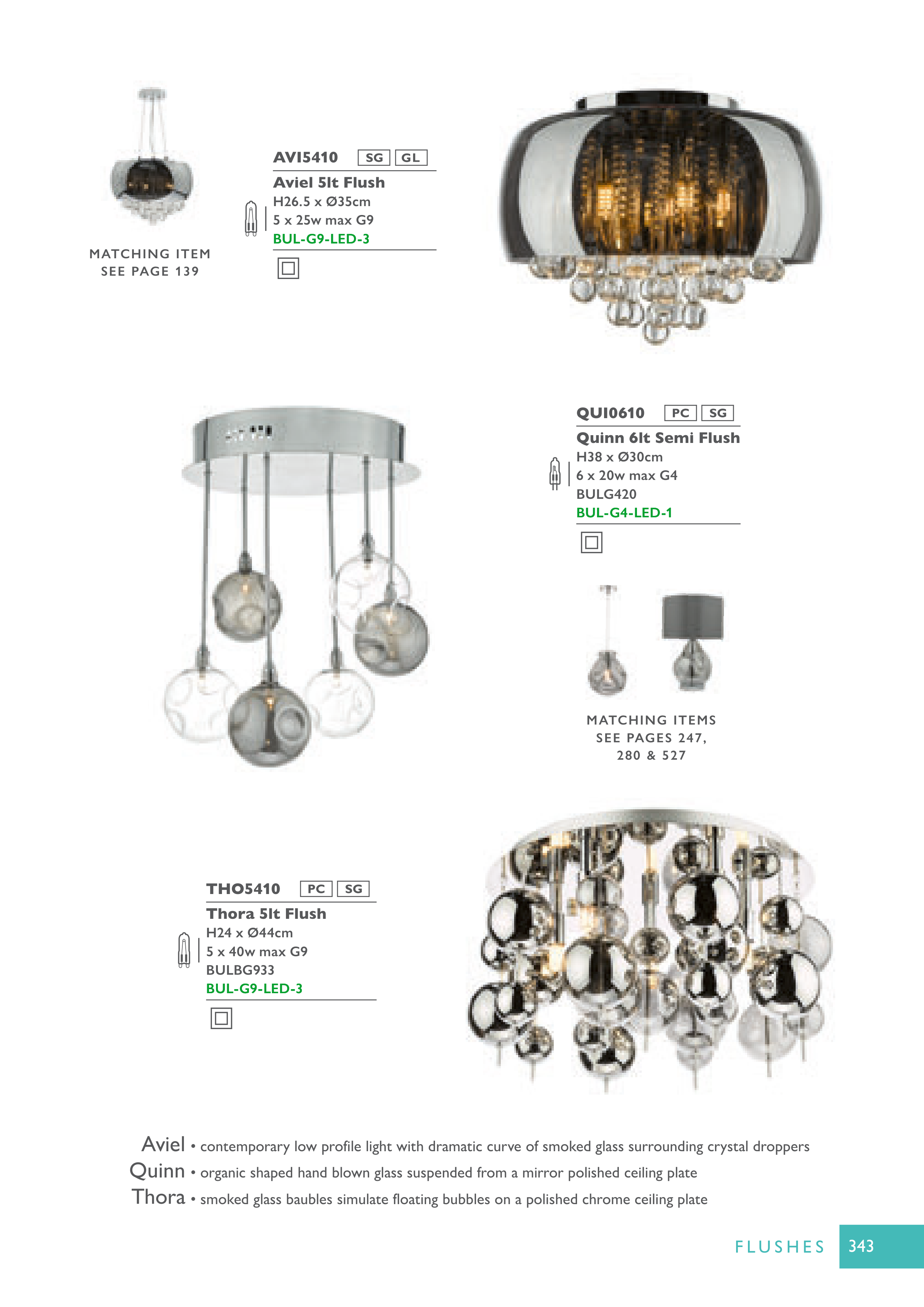 • smoked glass baubles simulate floating bubbles on a polished chrome ceiling plate