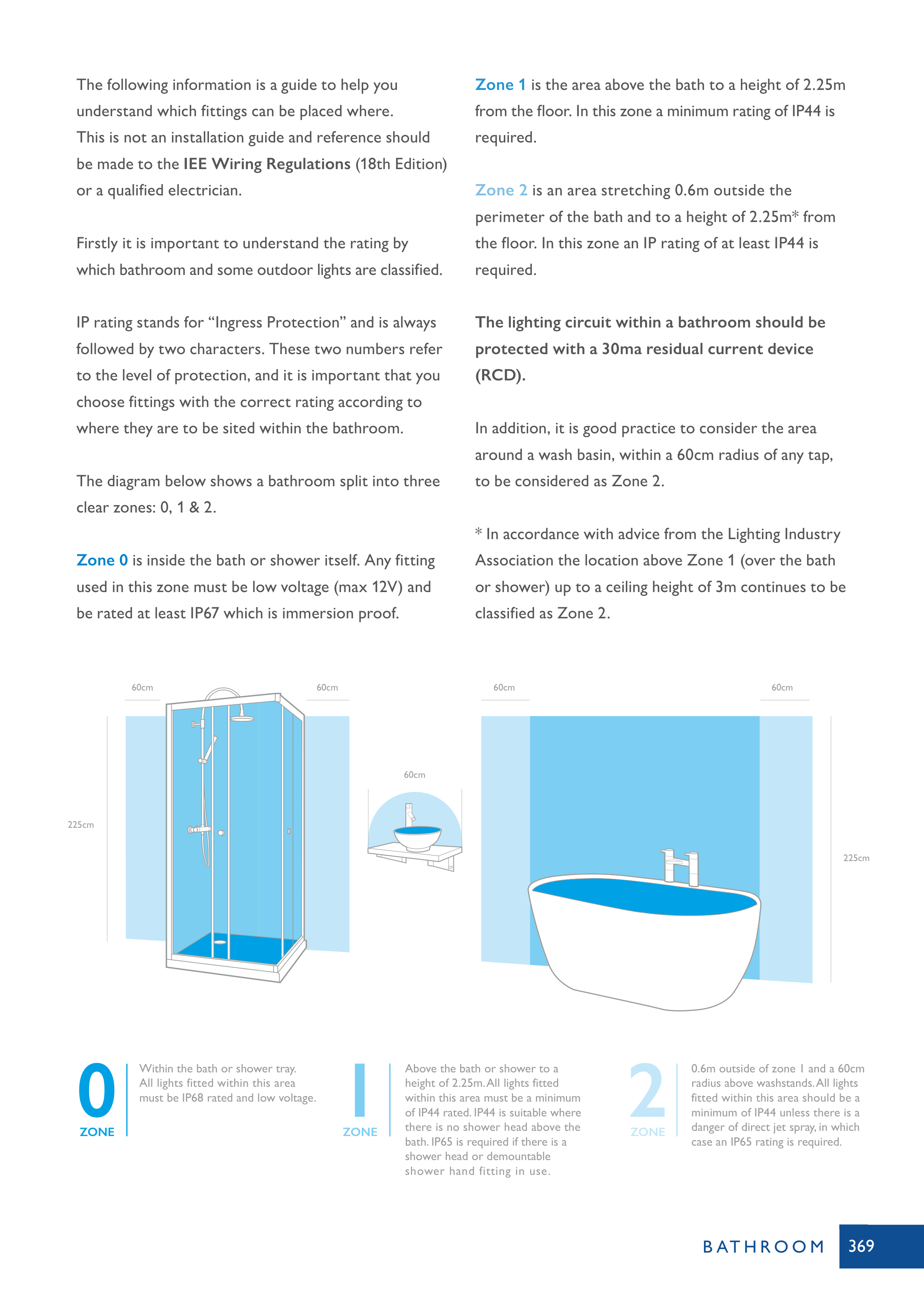 lighting zone your light is placed within. Outside of all zones, any rated light fitting can be used in these areas.