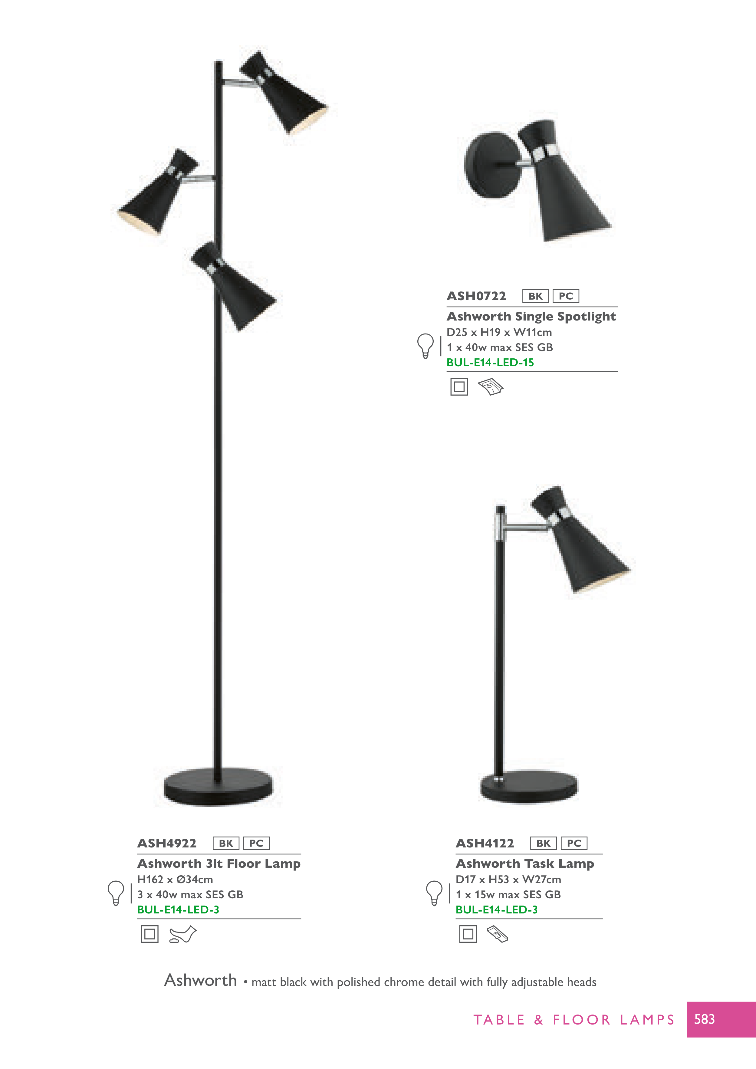 • matt black with polished chrome detail with fully adjustable heads