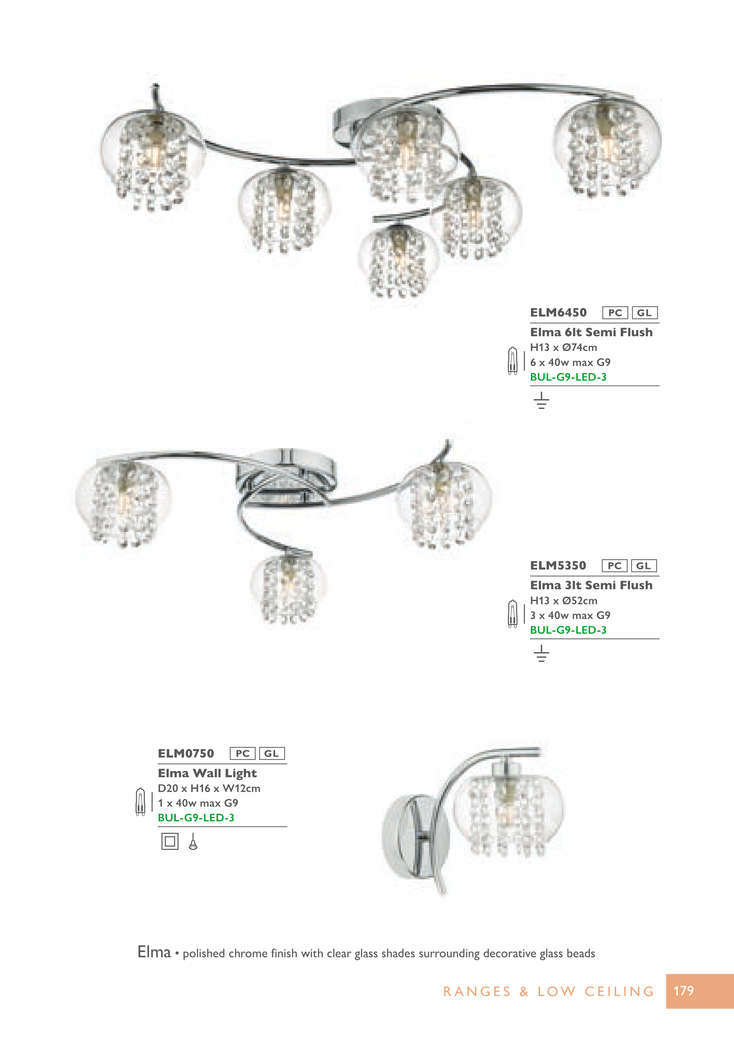 • polished chrome finish with clear glass shades surrounding decorative glass beads