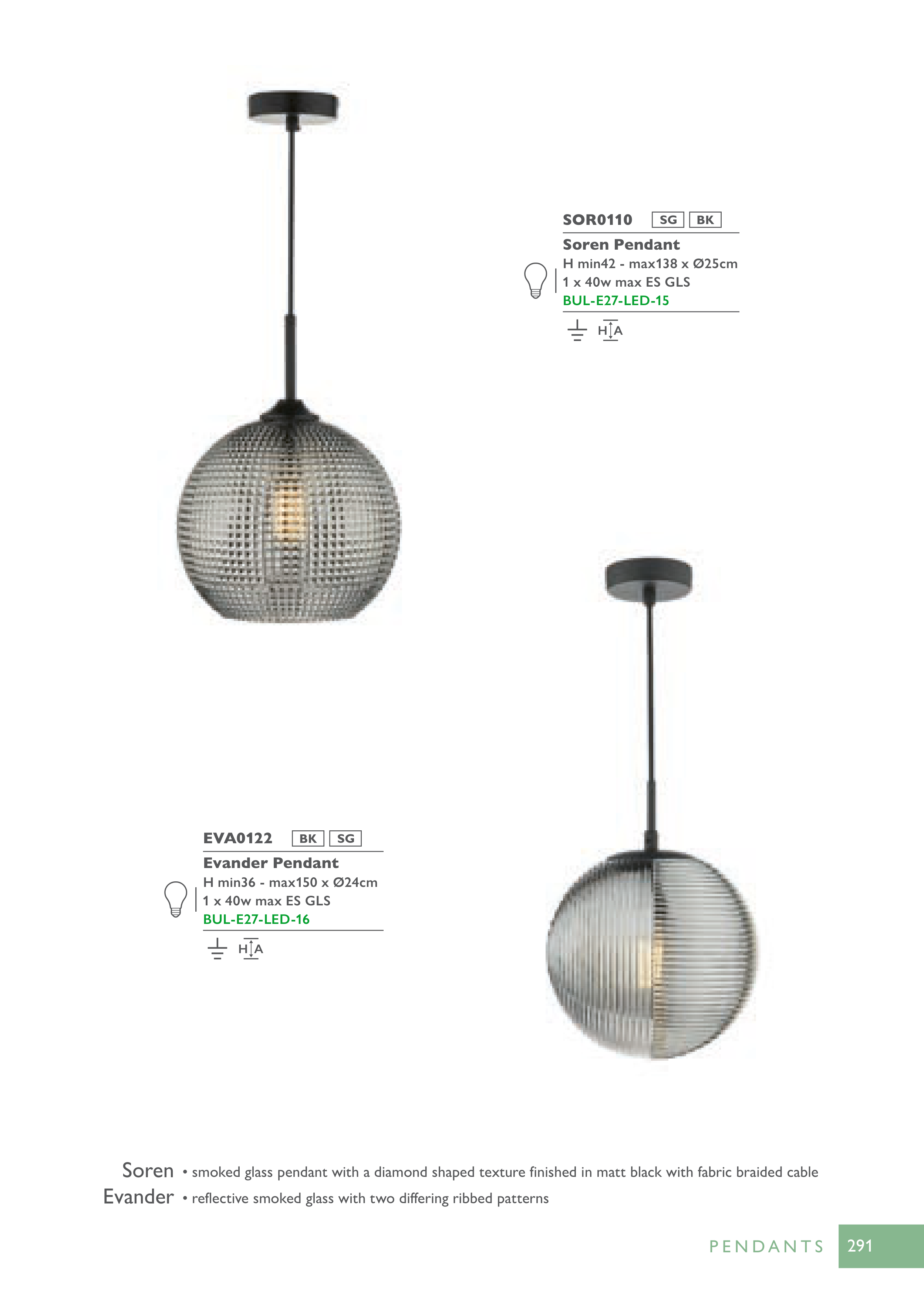 • smoked glass pendant with a diamond shaped texture finished in matt black with fabric braided cable