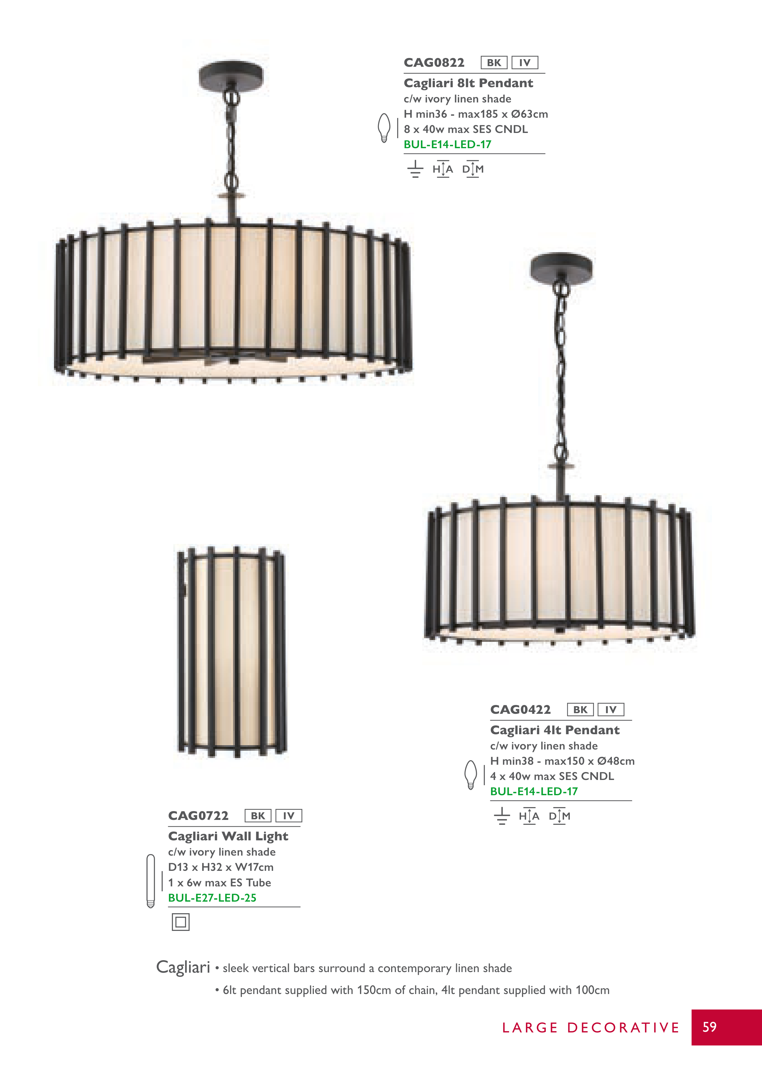 • 6lt pendant supplied with 150cm of chain, 4lt pendant supplied with 100cm