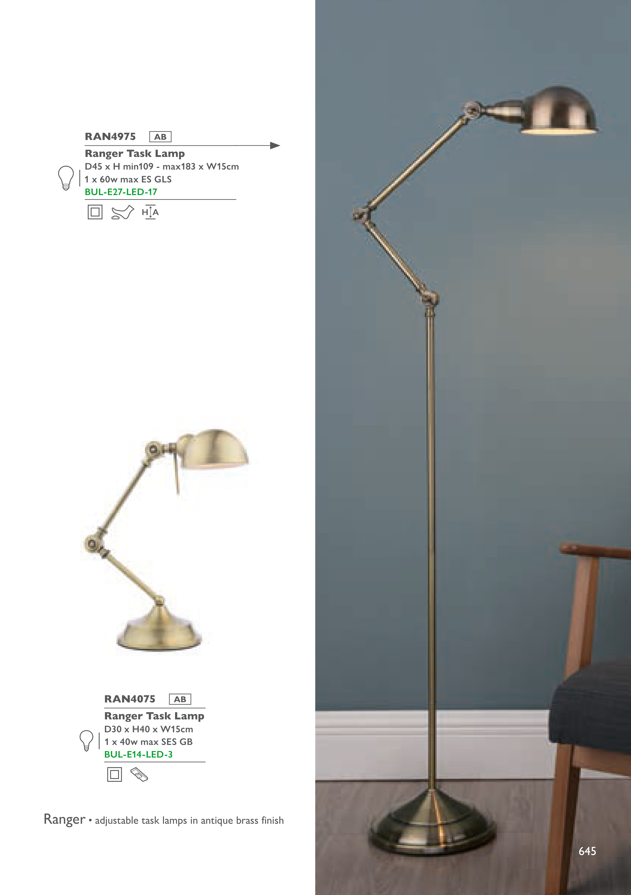 • adjustable task lamps in antique brass finish