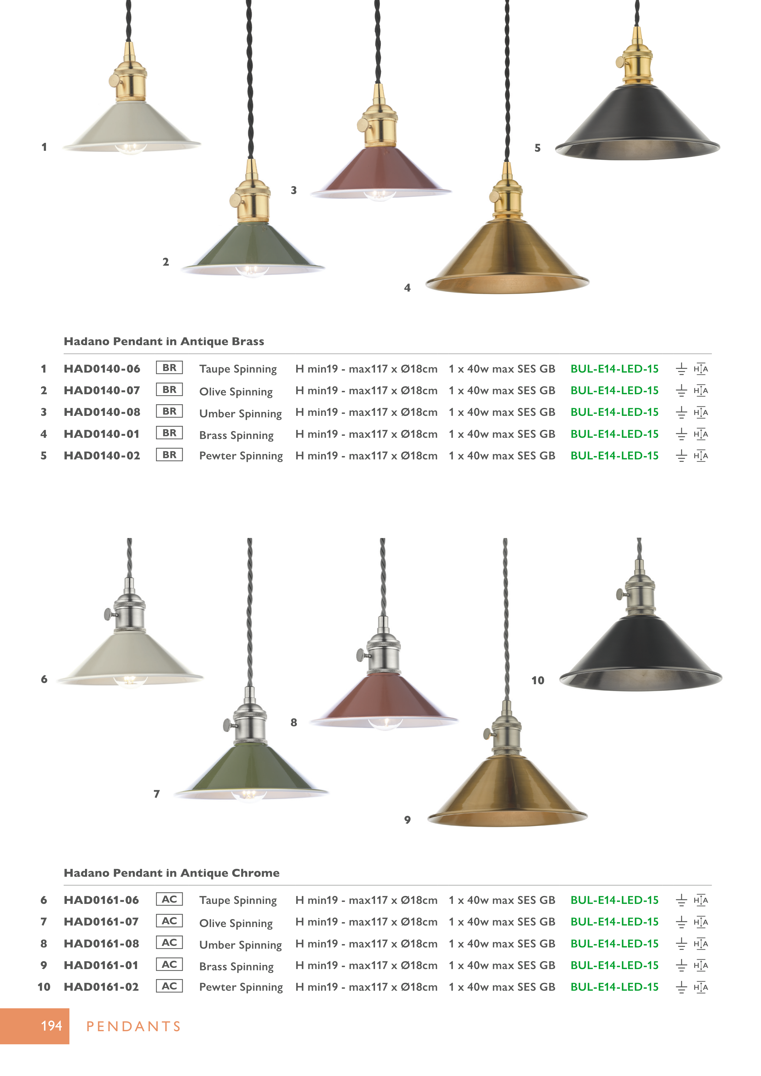 H min19 - max117 x Ø18cm 1 x 40w max SES GB