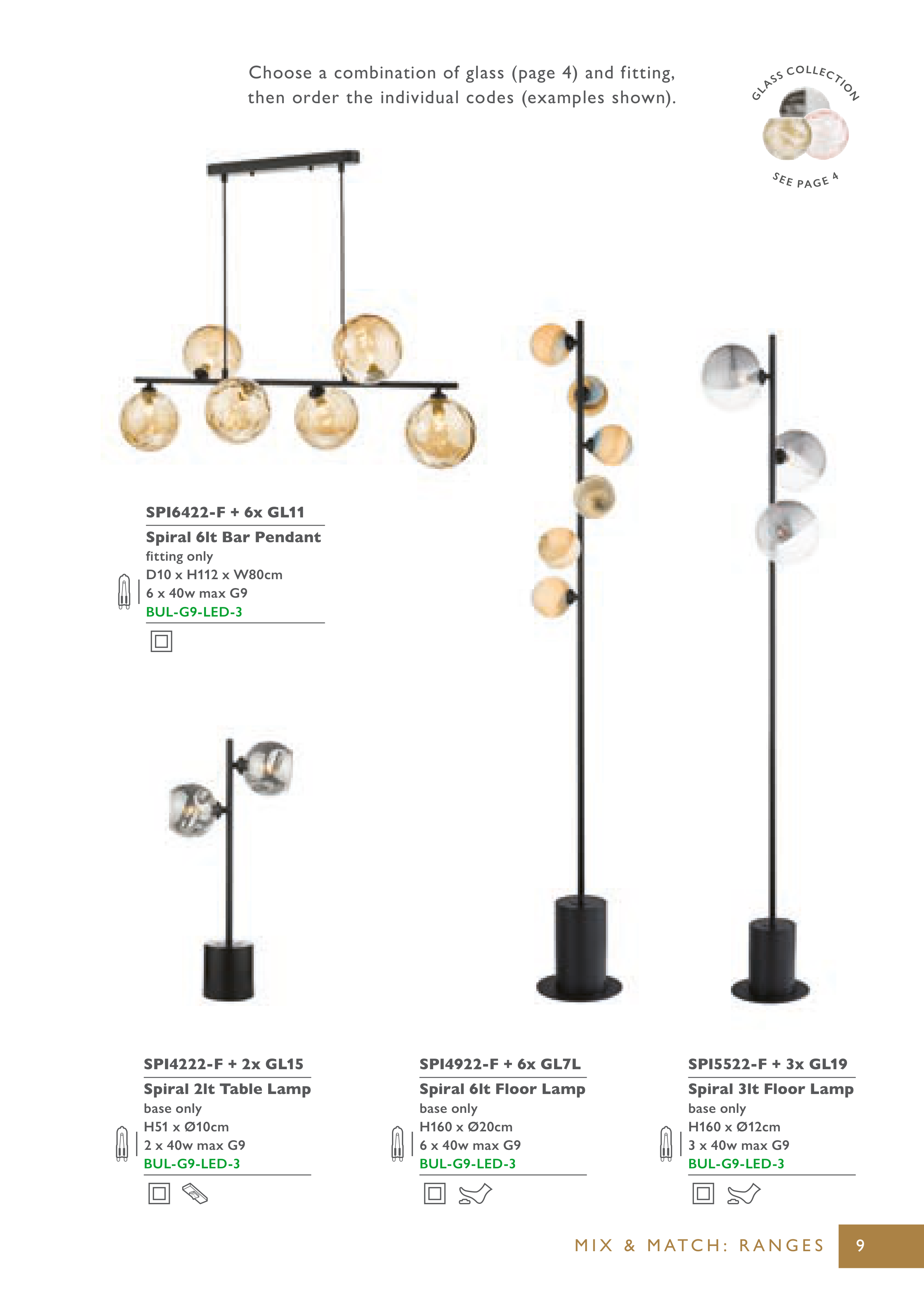 Choose a combination of glass (page 4) and fitting,