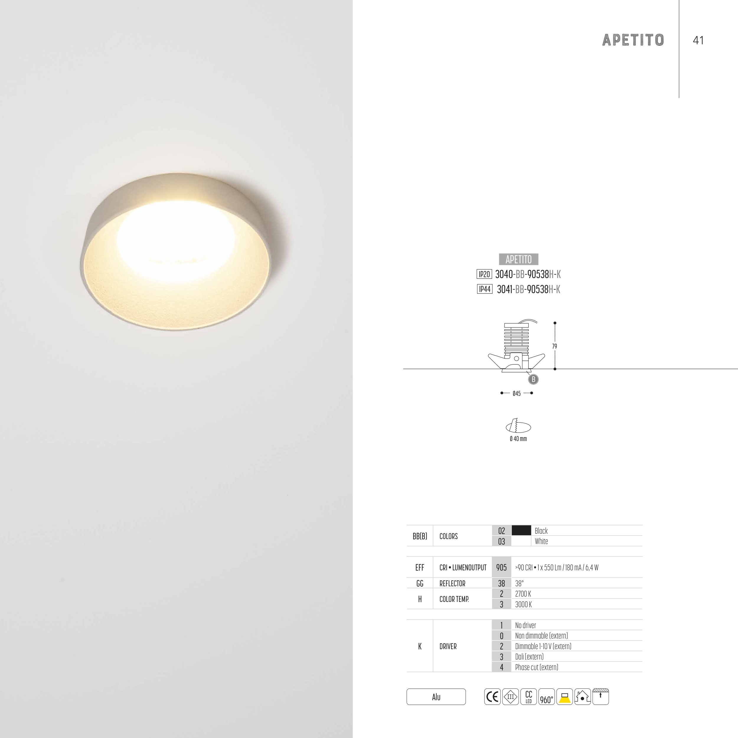>90 CRI • 1 x 550 Lm / 180 mA / 6,4 W