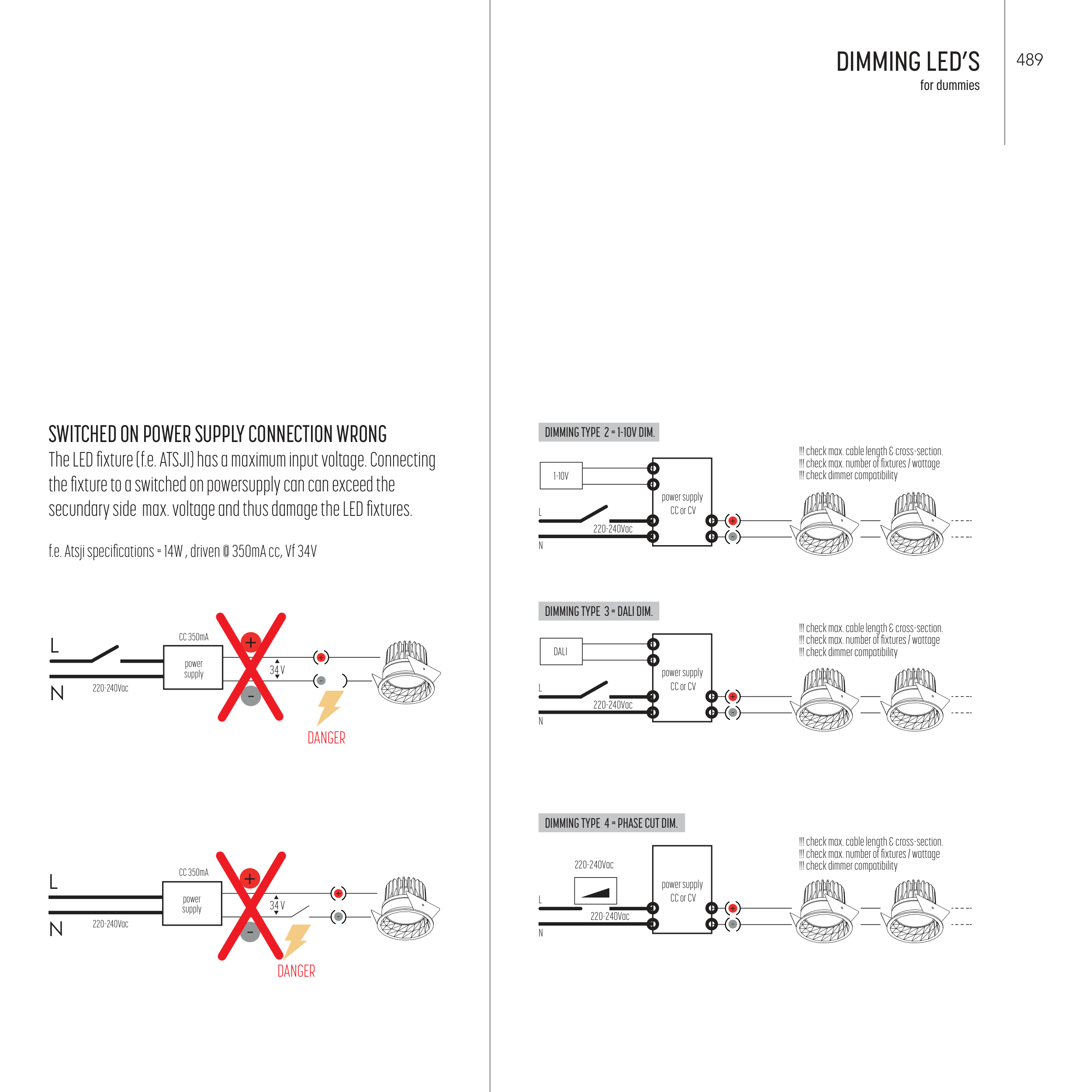 secundary side max. voltage and thus damage the LED fixtures.