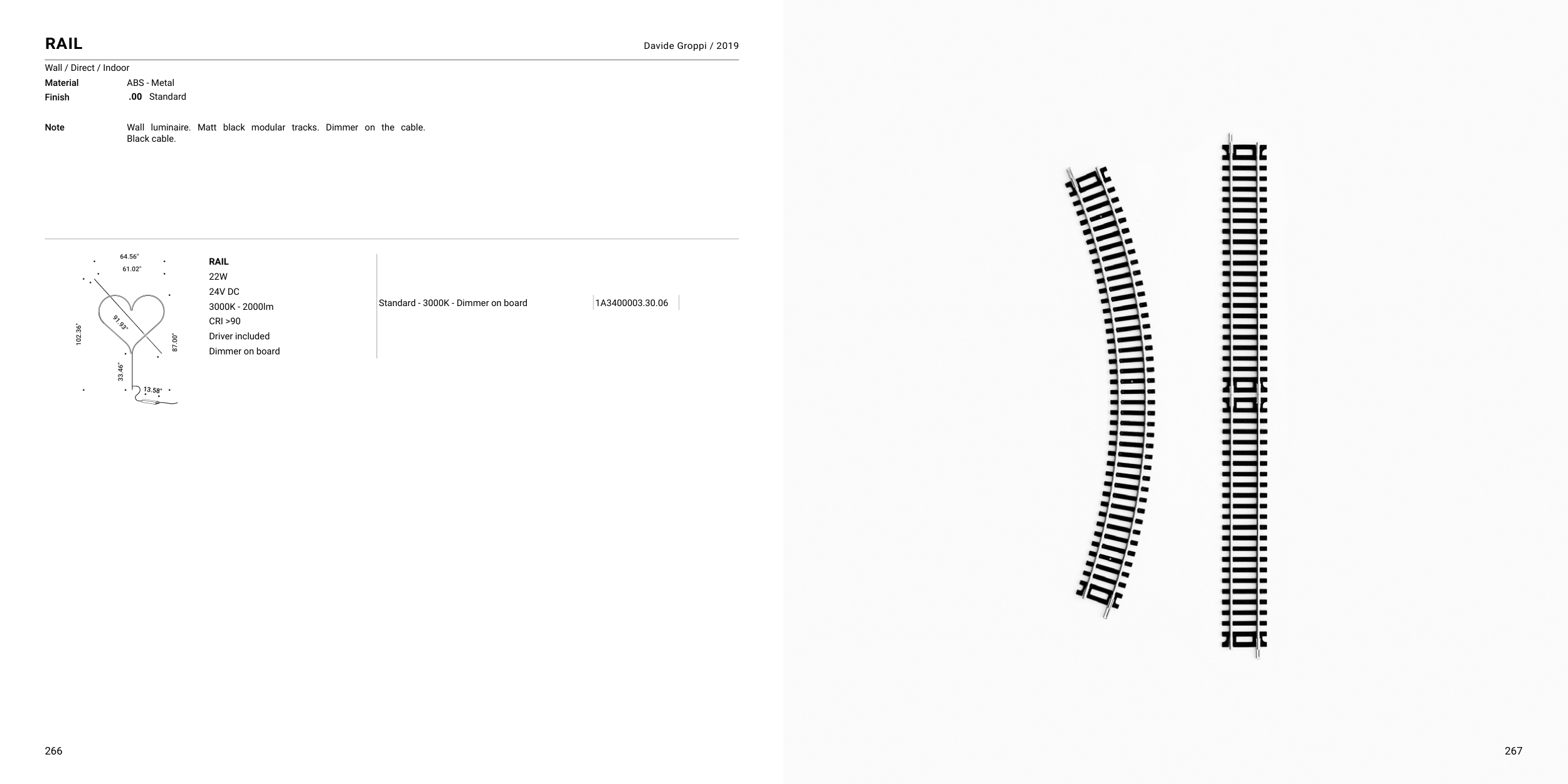 Wall luminaire. Matt black modular tracks. Dimmer on the cable.