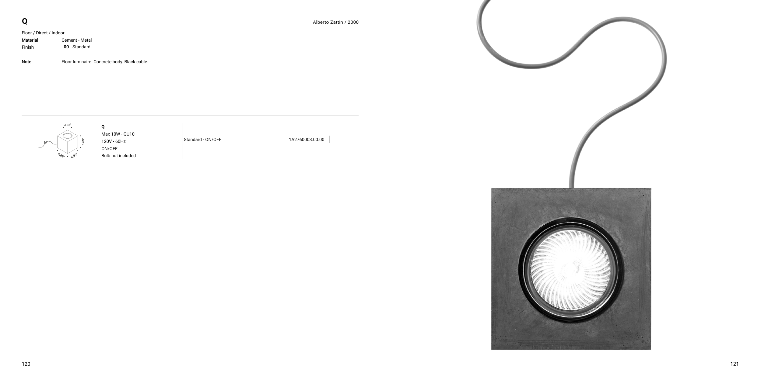 Floor luminaire. Concrete body. Black cable.
