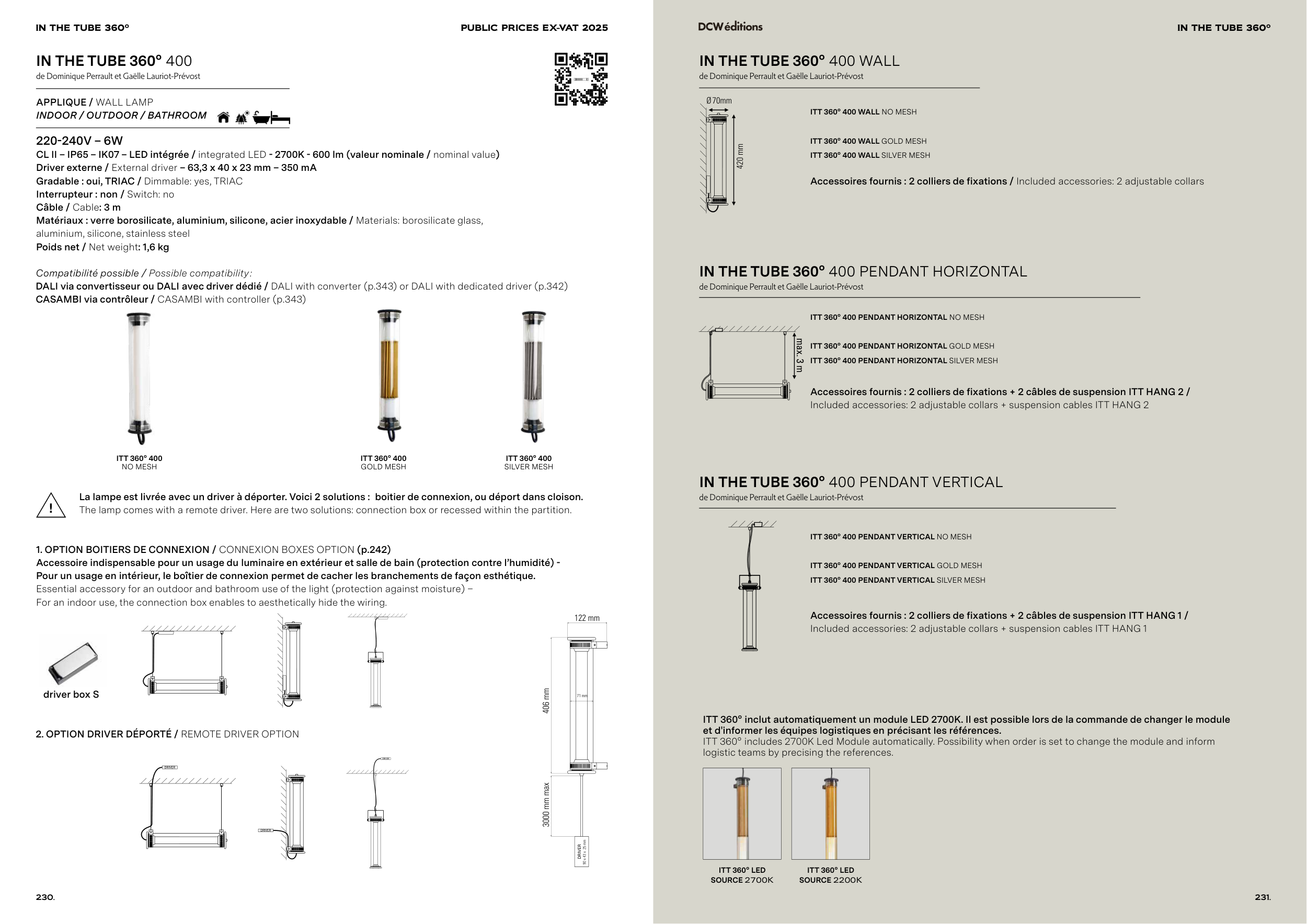 ITT 360° inclut automatiquement un module LED 2700K. Il est possible lors de la commande de changer le module