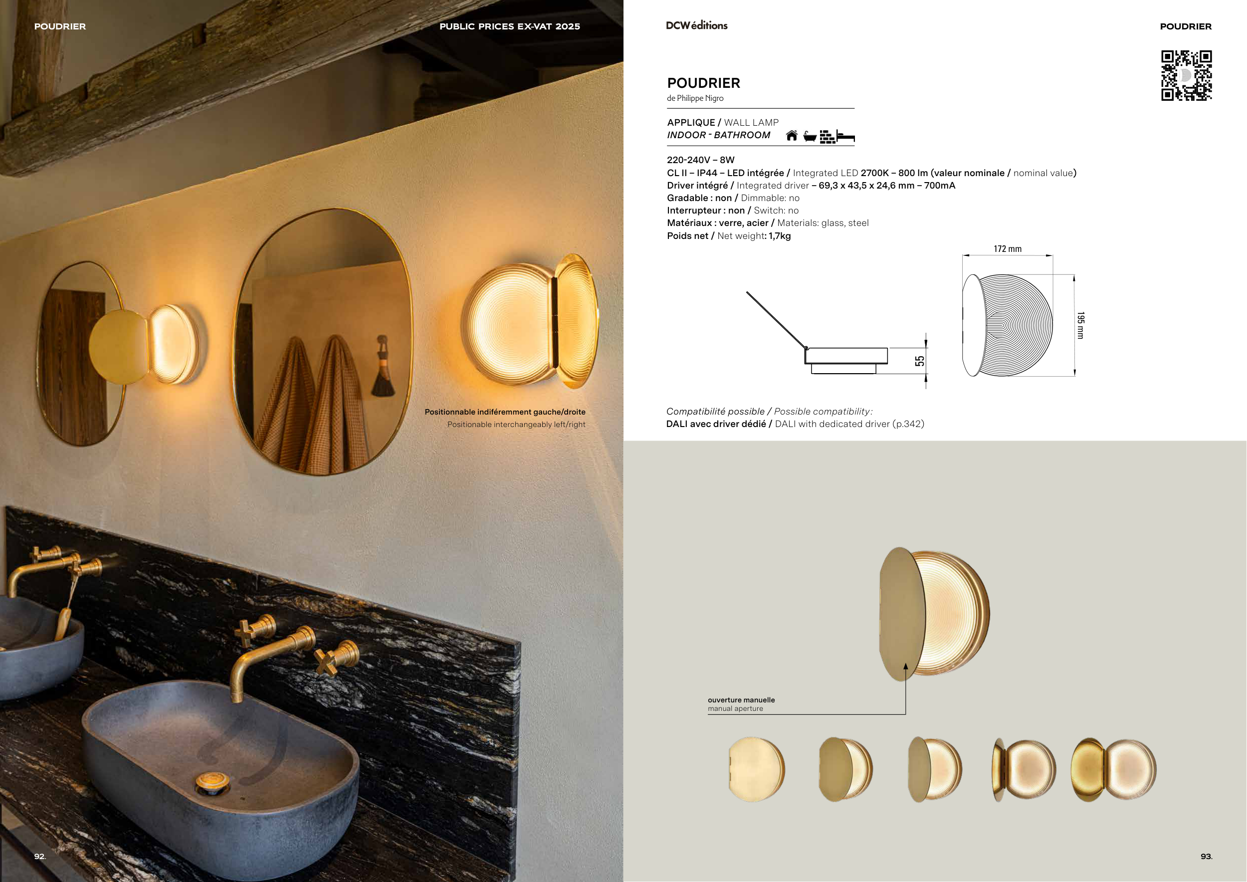CL II – IP44 – LED intégrée / Integrated LED 2700K – 800 lm (valeur nominale / nominal value)
