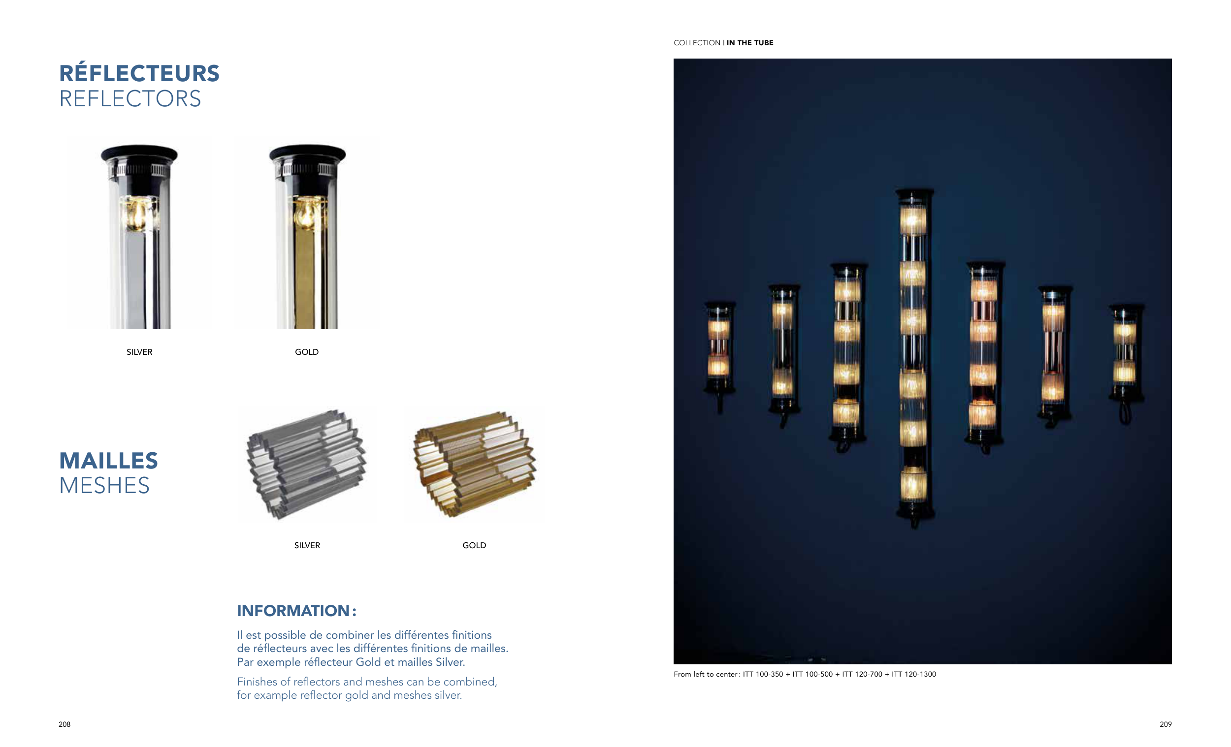 Finishes of reflectors and meshes can be combined,
