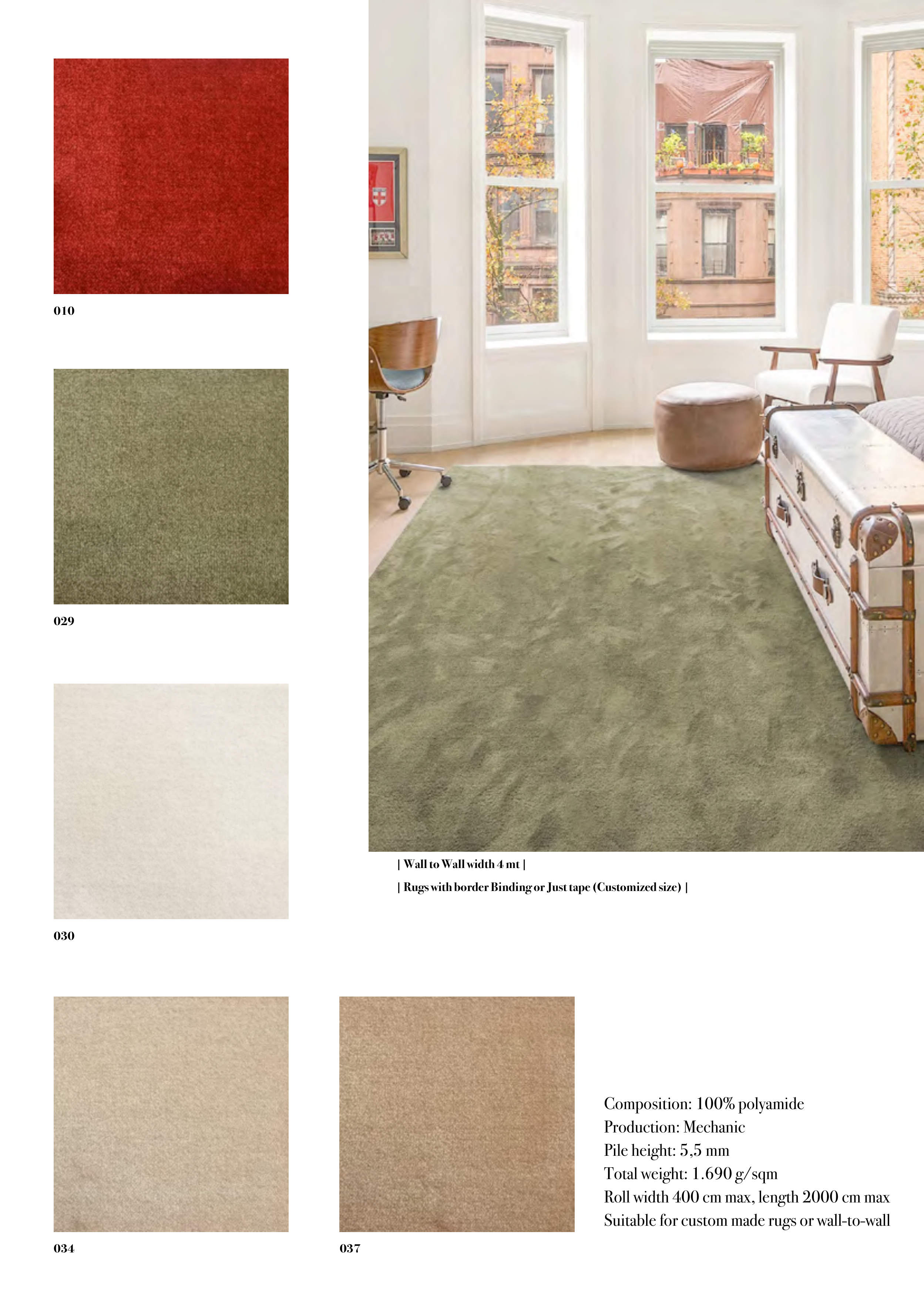 Suitable for custom made rugs or wall-to-wall