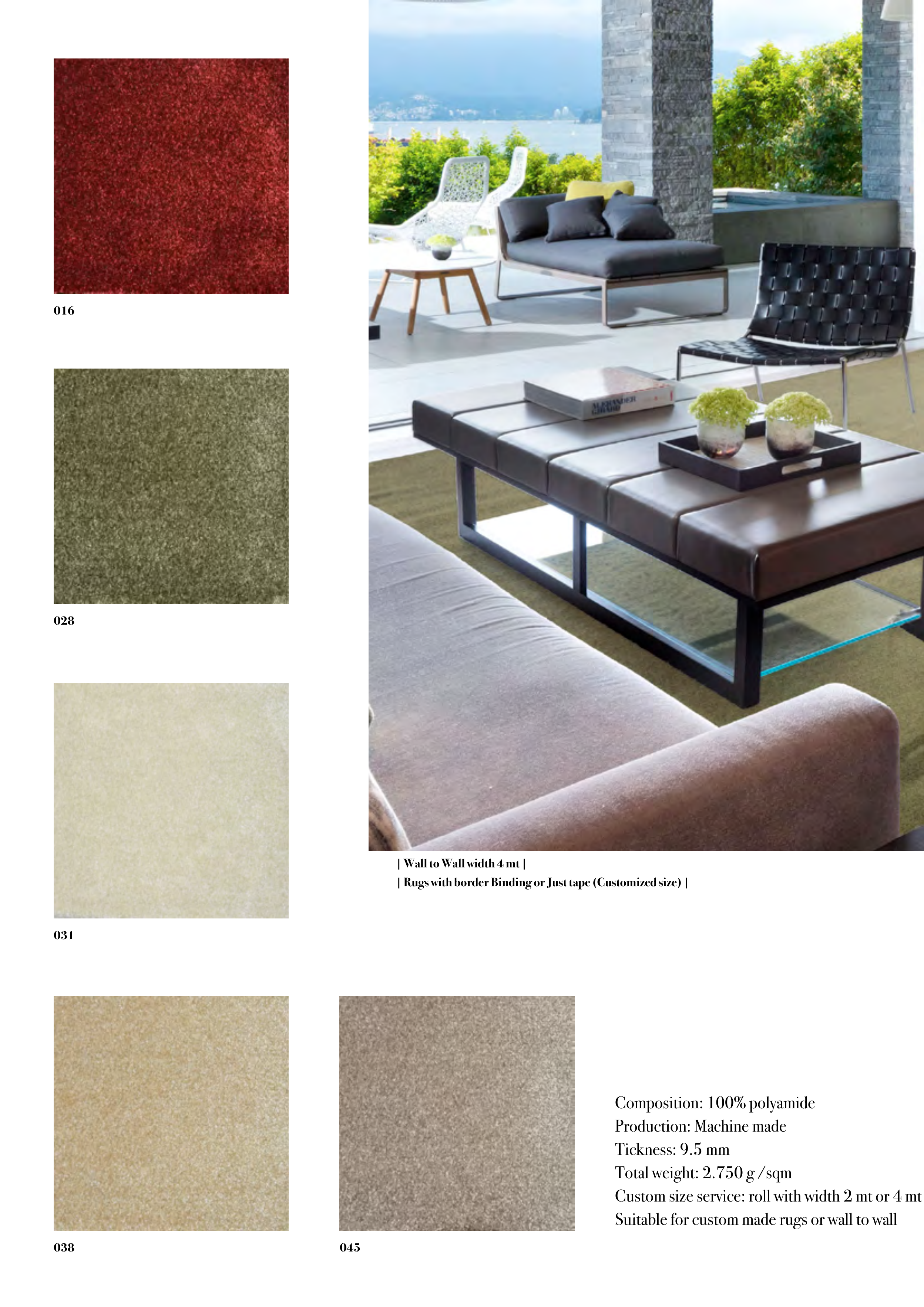 Suitable for custom made rugs or wall to wall