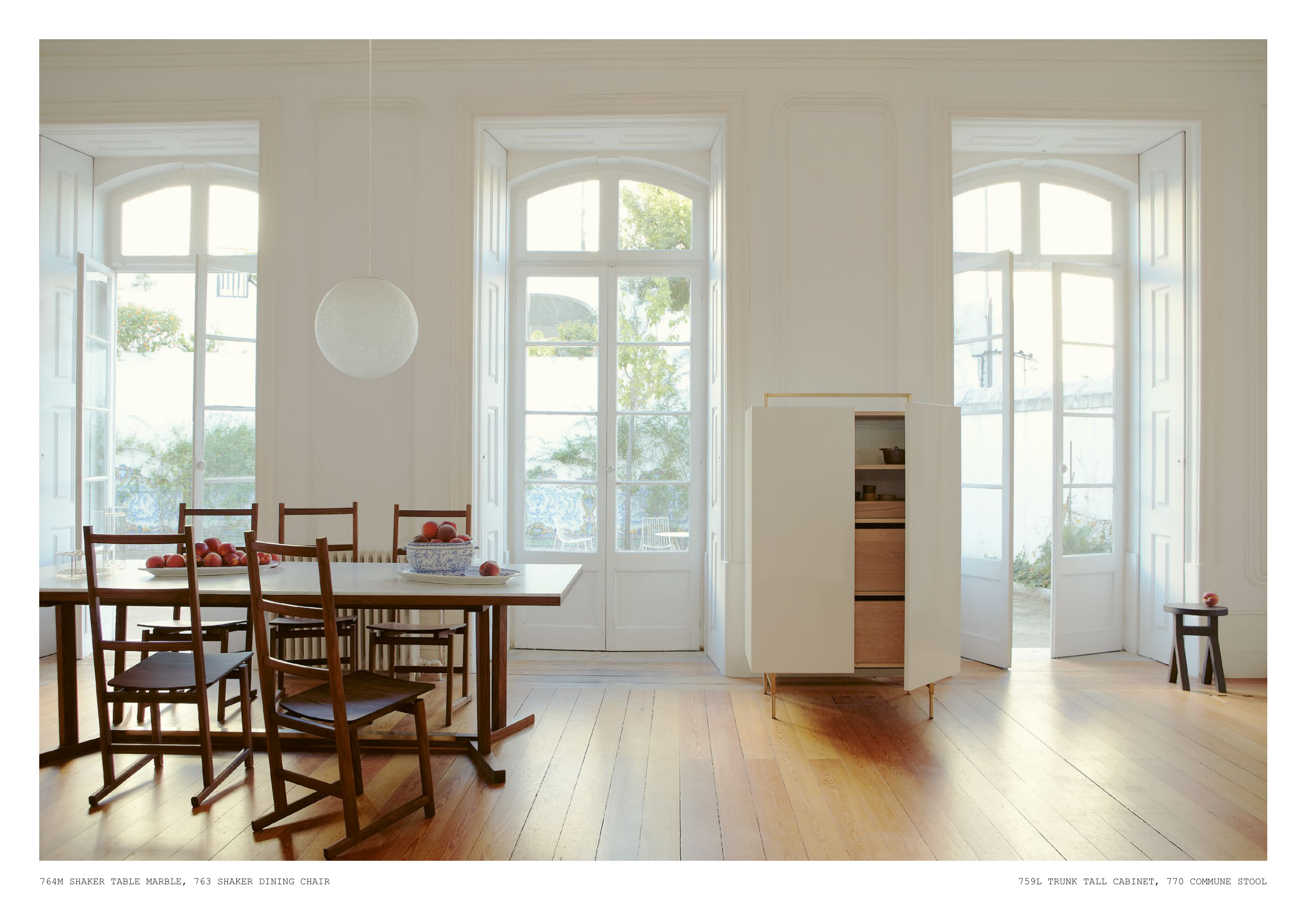 764M SHAKER TABLE MARBLE, 763 SHAKER DINING CHAIR