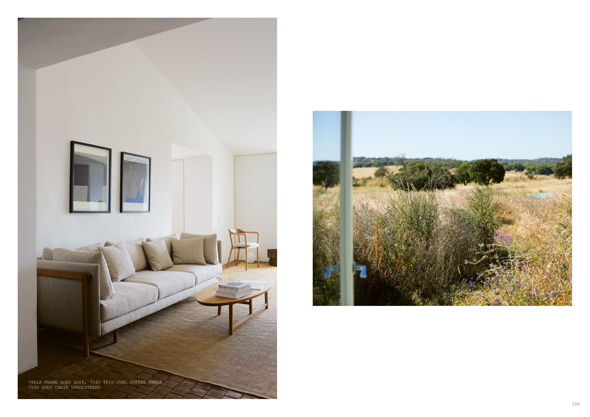 766LA FRAME LONG SOFA, 754O TRIO OVAL COFFEE TABLE