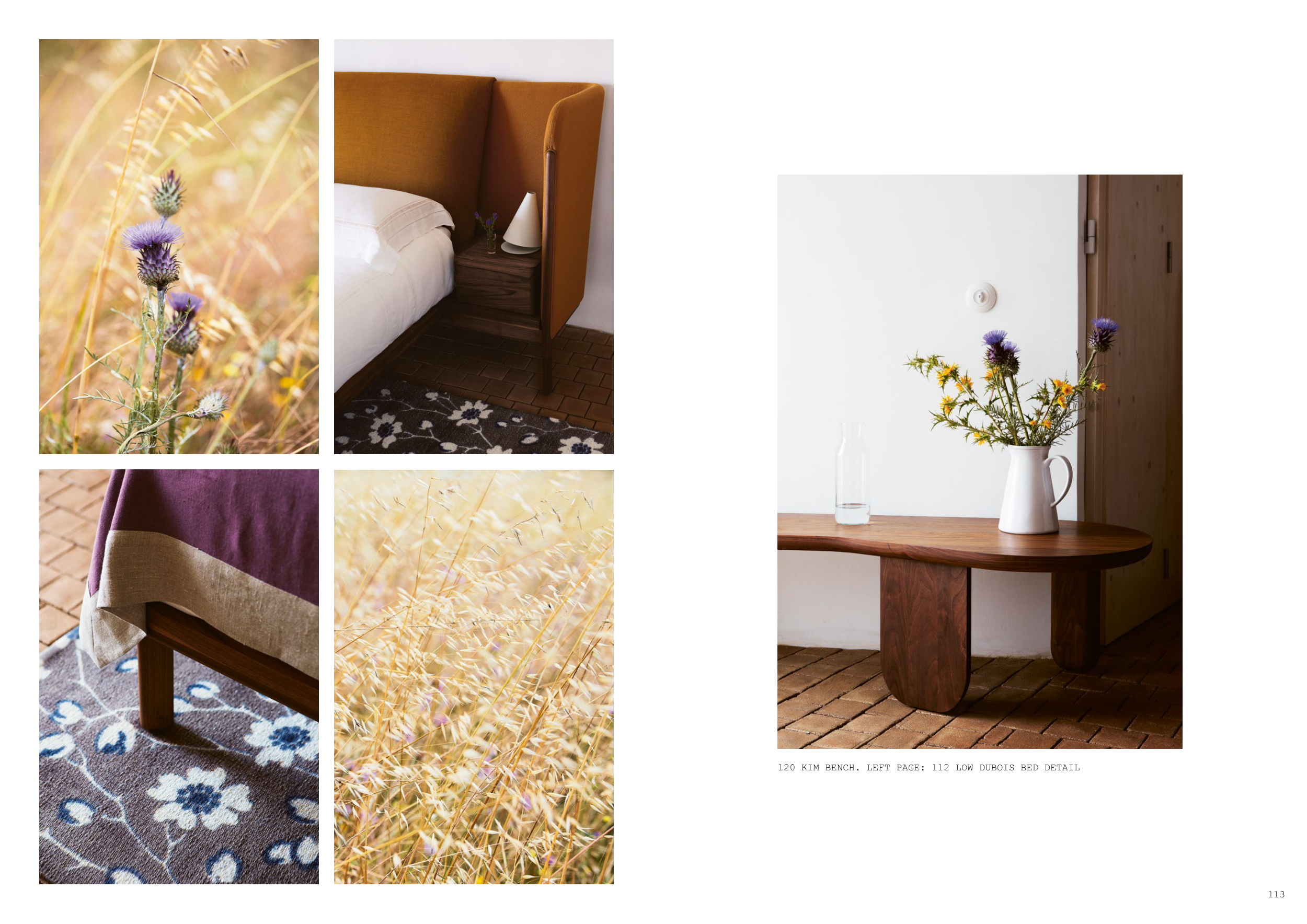 120 KIM BENCH. LEFT PAGE: 112 LOW DUBOIS BED DETAIL
