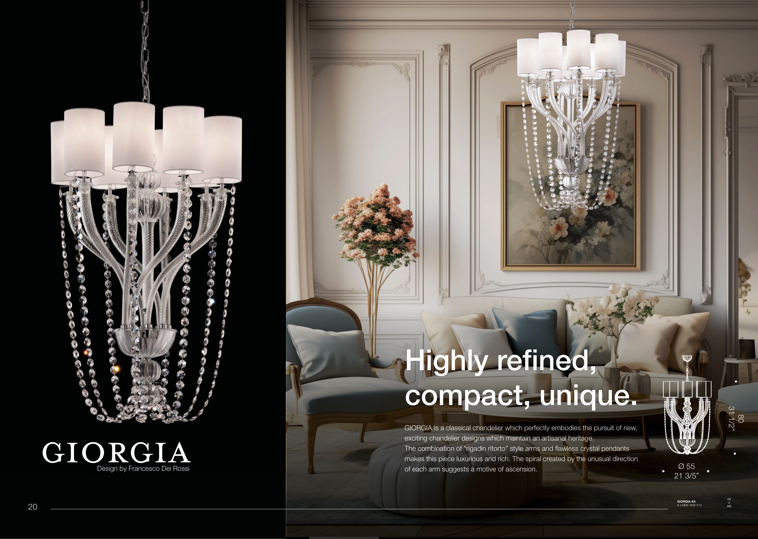 GIORGIA is a classical chandelier which perfectly embodies the pursuit of new,
