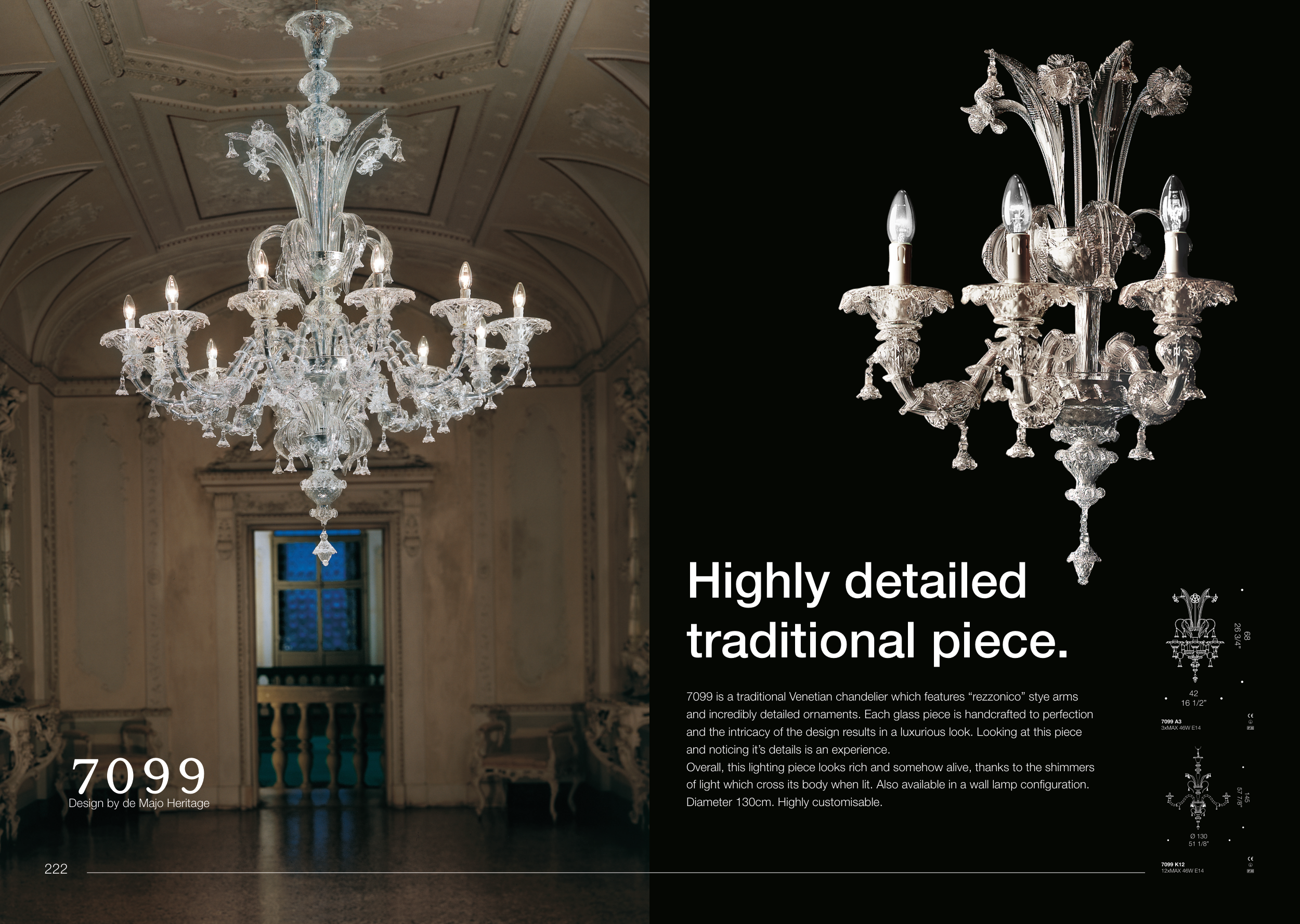 7099 is a traditional Venetian chandelier which features “rezzonico” stye arms