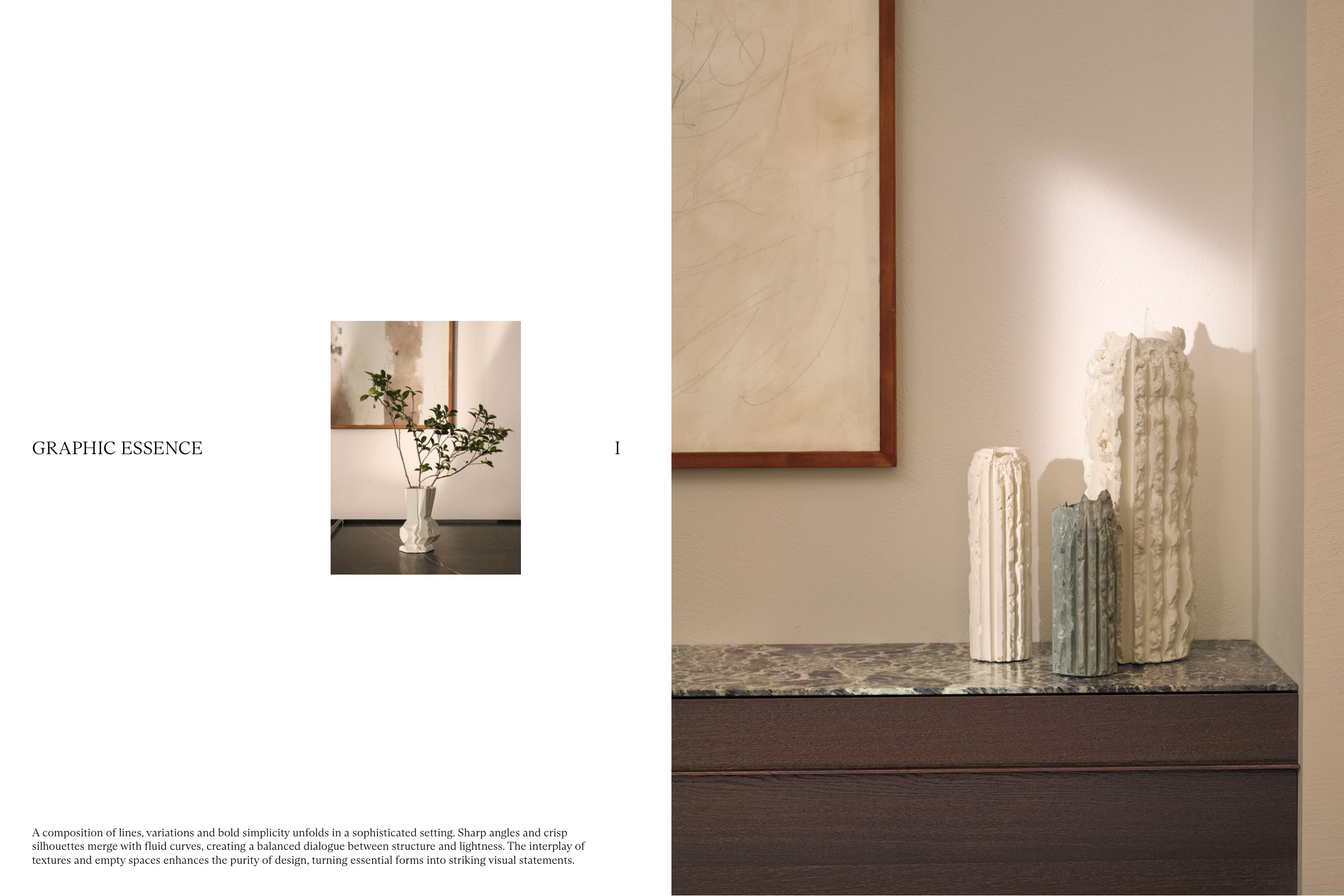 textures and empty spaces enhances the purity of design, turning essential forms into striking visual statements.