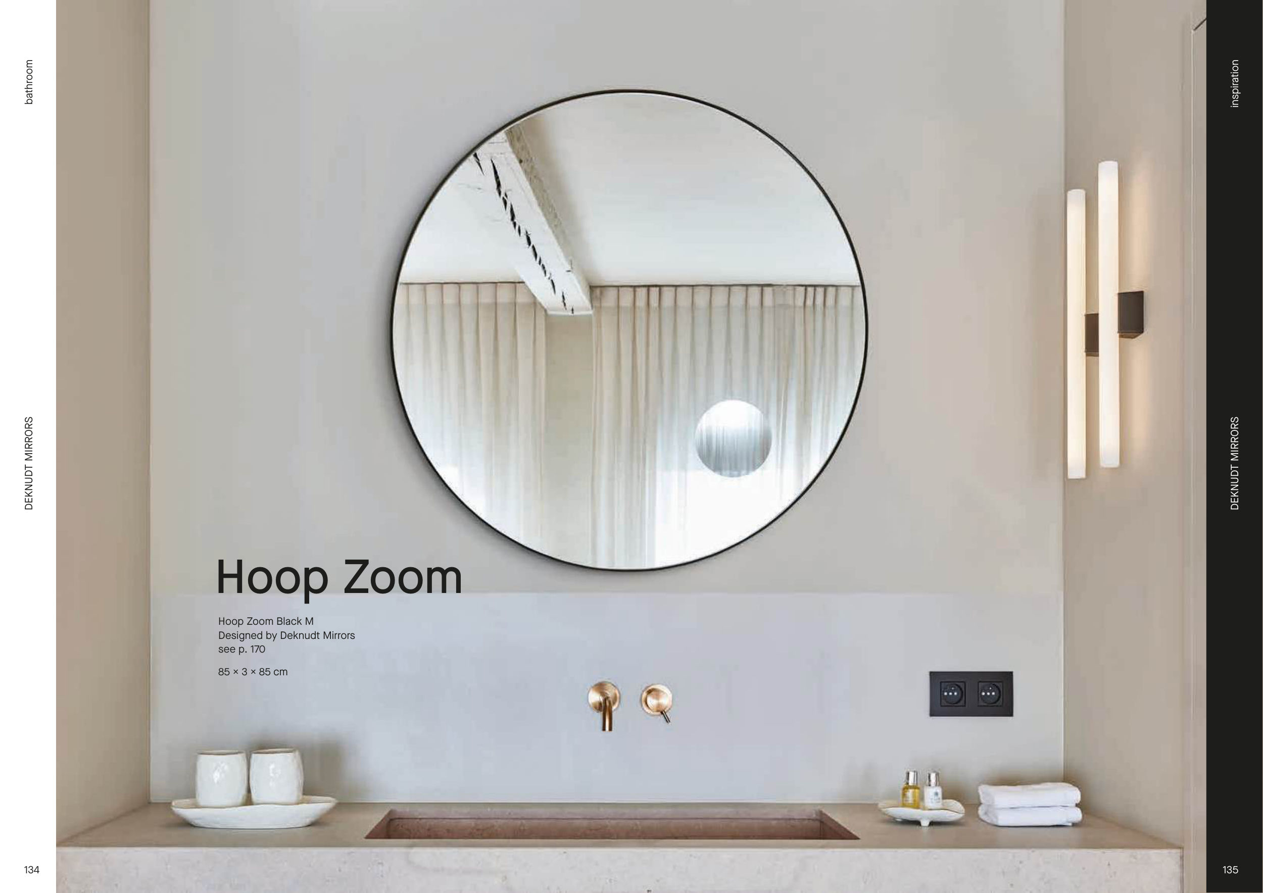 DEKNUDT MIRRORS DEKNUDT MIRRORS bathroom inspiration more information on www.deknudtmirrors.com 135 134 7 year warranty — European product Hoop Zoom Black M Designed by Deknudt Mirrors see p. 170 85 x 3 x 85 cm Hoop Zoom DEKNUDT MIRRORS 135 inspiration