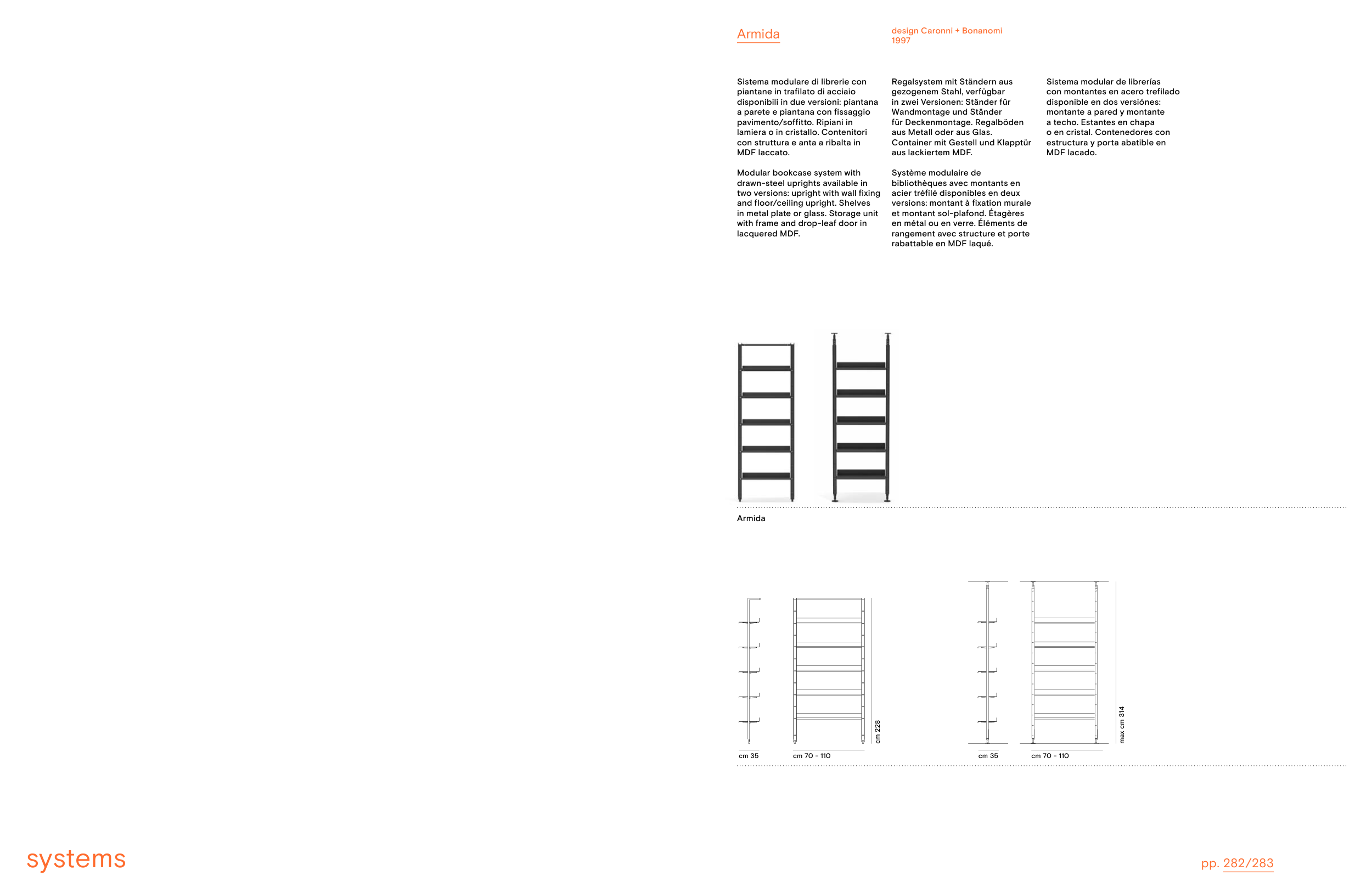 larghezza ripiani/ shelves width 70 - 110 cm