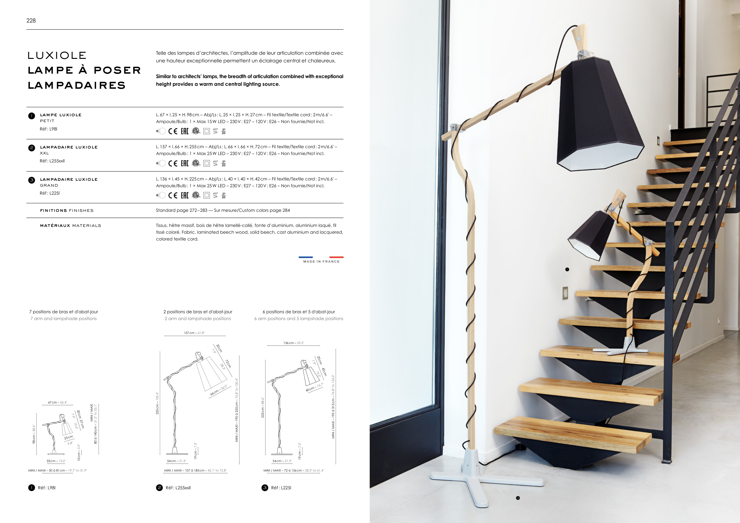 6 positions de bras et 5 d'abat-jour
