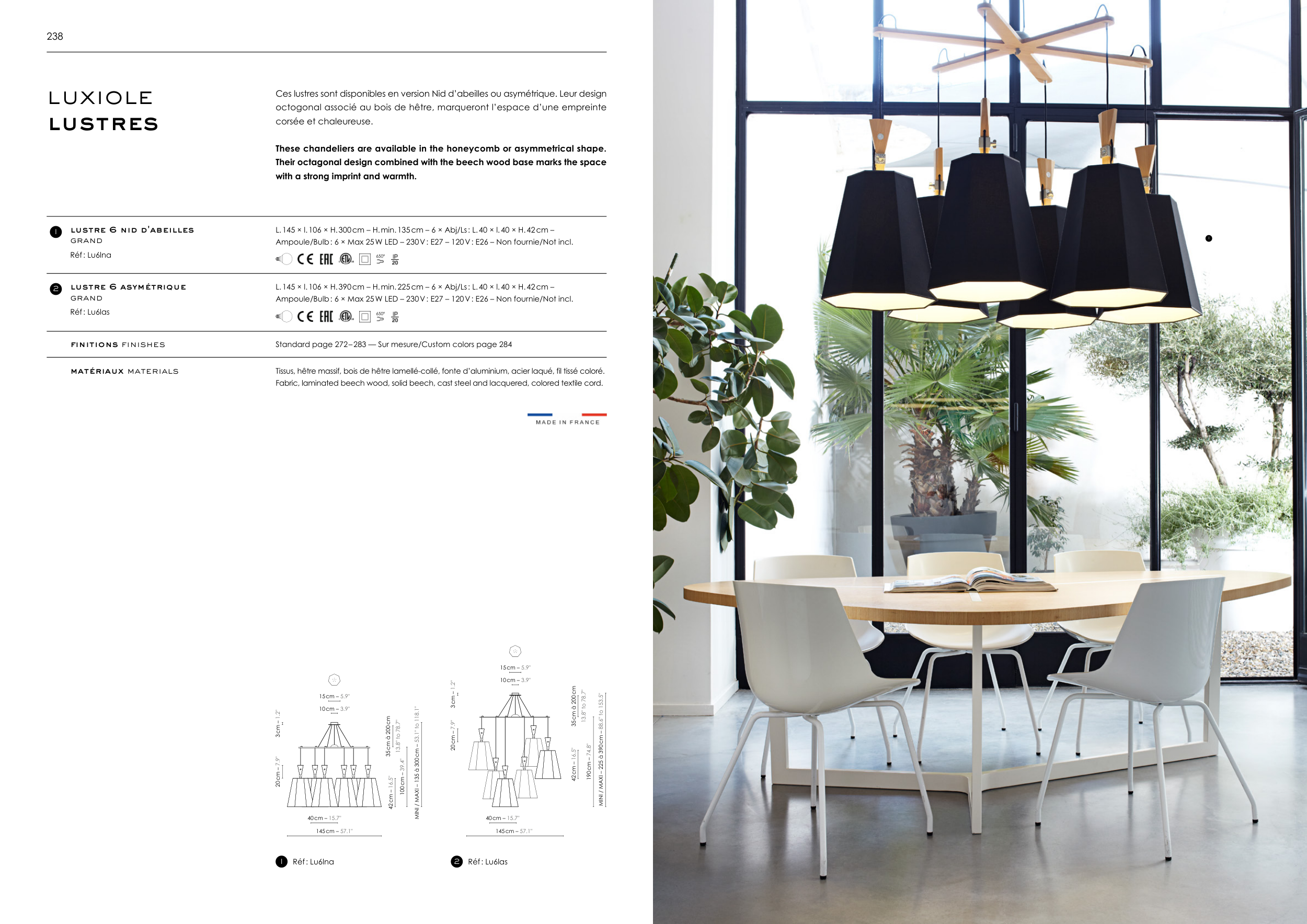 Ces lustres sont disponibles en version Nid d’abeilles ou asymétrique. Leur design