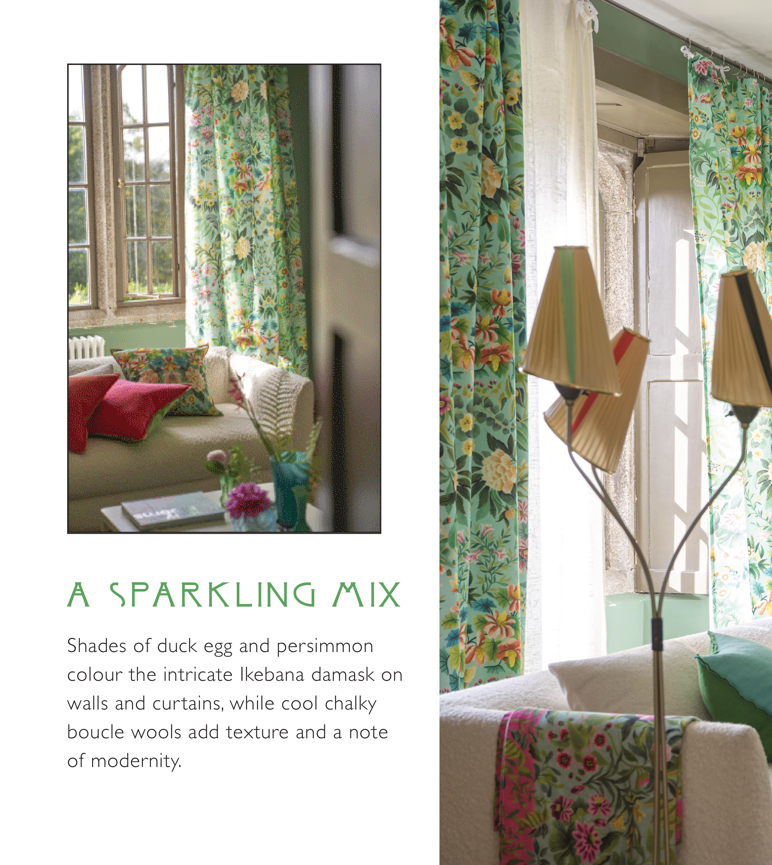 walls and curtains, while cool chalky